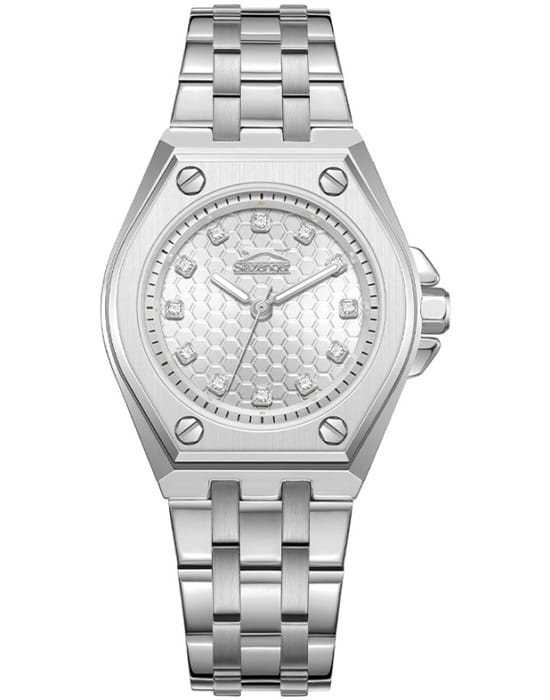 Женские часы Slazenger SL.09.2342.3.01 – это сочетание элегантности, современного стиля и надёжности. Изящный корпус из суперметалла подчёркивает утончённость модели, а благородное цветовое исполнение делает их идеальным аксессуаром для любой ситуации – будь то деловая встреча, романтический вечер или повседневные выходы. Циферблат украшен кристаллами. Циферблат надёжно защищён минеральным стекломМинеральное стеклоМинеральное стекло представляет собой искусственно выращенный минерал кварца. Такое стекло отличается особой устойчивостью к повреждениям и царапинам. Уступает по некоторым качествам сапфировому стеклу., которое устойчиво к механическим повреждениям и сохраняет кристальную прозрачность. Стрелки с люминесцентным покрытиемЛюминесцентное покрытиеПозволяет считывать показания времени в темноте. Производители наносят на стрелки, часовые индексы, безель или поверхность циферблата светонакопительный состав, дающий холодное свечение. мягко подсвечиваются в темноте, обеспечивая комфортное считывание времени в любое время суток. Эргономичный браслет из суперметалла удобно облегает запястье и фиксируется с помощью раскладной застёжкиРаскладная застёжкаТакой тип застёжки используется только на браслетах из металла. Она никогда не раскрывается полностью, происходит разделение на 2 и более частей. Раскладывающая застёжка снизит вероятность потери часов к минимуму., обеспечивая надёжность и комфорт в повседневном ношении. Утончённый стиль, внимание к деталям и практичность делают эту модель идеальным выбором для современных женщин, ценящих эстетику и функциональность.