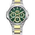 Женские кварцевые часы Slazenger SL.09.2365.4.01 – это сочетание элегантности, современного стиля и надёжности. Изящный корпус из суперметалла серебристого цвета, диаметром 33 мм и толщиной 10 мм, подчёркивает утончённость модели и делает их идеальным аксессуаром для любой ситуации – будь то деловая встреча, романтический вечер или повседневные выходы. Циферблат надёжно защищён минеральным стекломМинеральное стеклоМинеральное стекло представляет собой искусственно выращенный минерал кварца. Такое стекло отличается особой устойчивостью к повреждениям и царапинам. Уступает по некоторым качествам сапфировому стеклу., которое устойчиво к механическим повреждениям и сохраняет кристальную прозрачность. Браслет из суперметалла с частичным IP-покрытиемIP-покрытиеМетод ионного напыления. Демонстрирует повышенную устойчивость к истиранию, окислению и химическим веществам. Под воздействием высокого давления и температуры около 1500°C молекулы металла надёжно соединяются с частицами корпуса часов. золотистого цвета удобно облегает запястье и фиксируется с помощью раскладной застёжкиРаскладная застёжкаТакой тип застёжки используется только на браслетах из металла. Она никогда не раскрывается полностью, происходит разделение на 2 и более частей. Раскладывающая застёжка снизит вероятность потери часов к минимуму., обеспечивая надёжность и комфорт в повседневном ношении. Утончённый стиль, внимание к деталям и практичность делают эту модель идеальным выбором для современных женщин, ценящих эстетику и функциональность. Стрелки и метки покрыты люминесцентным покрытиемЛюминесцентное покрытиеПозволяет считывать показания времени в темноте. Производители наносят на стрелки, часовые индексы, безель или поверхность циферблата светонакопительный состав, дающий холодное свечение., обеспечивающим отличную читаемость в темноте. Вынесенный циферблат с 24-х часовым указателем времени украшен фианитами. Водозащита до 30 метров позволит защитить корпус от случайных брызг или капель дождя.
