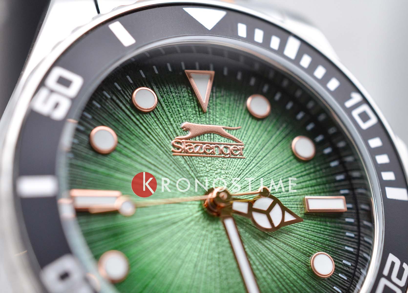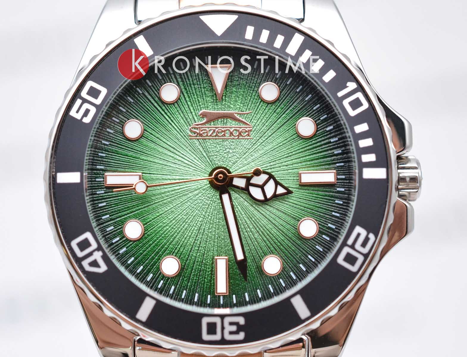 Женские кварцевые часы Slazenger — это элегантный аксессуар. Корпус диаметром 33 мм и толщиной 9 мм выполнен из суперметалла. Безель с IP-покрытиемIP-покрытиеМетод ионного напыления. Демонстрирует повышенную устойчивость к истиранию, окислению и химическим веществам. Под воздействием высокого давления и температуры около 1500°C молекулы металла надёжно соединяются с частицами корпуса часов.. Циферблат зелёного цвета оформлен индексами и стрелками. Циферблат защищён минеральным стекломМинеральное стеклоМинеральное стекло представляет собой искусственно выращенный минерал кварца. Такое стекло отличается особой устойчивостью к повреждениям и царапинам. Уступает по некоторым качествам сапфировому стеклу.. Механизм — кварцевый. Стрелки и метки с люминесцентным покрытиемЛюминесцентное покрытиеПозволяет считывать показания времени в темноте. Производители наносят на стрелки, часовые индексы, безель или поверхность циферблата светонакопительный состав, дающий холодное свечение., обеспечивающим хорошую читаемость в темноте. Часы оснащены браслетом из суперметалла с IP-покрытиемIP-покрытиеМетод ионного напыления. Демонстрирует повышенную устойчивость к истиранию, окислению и химическим веществам. Под воздействием высокого давления и температуры около 1500°C молекулы металла надёжно соединяются с частицами корпуса часов. и раскладной застёжкойРаскладная застёжкаТакой тип застёжки используется только на браслетах из металла. Она никогда не раскрывается полностью, происходит разделение на 2 и более частей. Раскладывающая застёжка снизит вероятность потери часов к минимуму.. Водонепроницаемость 50 м позволяет использовать часы в повседневных условиях. Гарантия — 12 месяцев. Идеальный выбор для тех, кто ценит стиль и качество.
