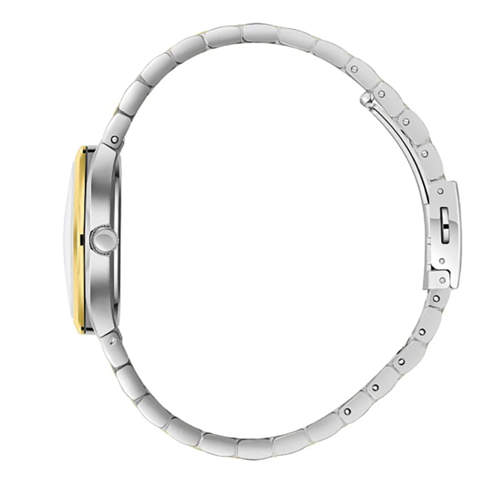 Женские кварцевые часы Slazenger — это выразительный и функциональный аксессуар. Корпус диаметром 34 мм и толщиной 9,5 мм выполнен из суперметалла. БезельБезельВнешний ободок, закрепляющий стекло. В спортивных часах так называется поворотное кольцо с делениями на циферблате, выполняет роль таймера – замеряет отрезки времени на шкале. Неподвижный безель – элемент декора. Однонаправленно вращающийся безель на дайверских часах позволяет фиксировать моменты погружения и выныривания на поверхность. из суперметалла с IP-покрытиемIP-покрытиеМетод ионного напыления. Демонстрирует повышенную устойчивость к истиранию, окислению и химическим веществам. Под воздействием высокого давления и температуры около 1500°C молекулы металла надёжно соединяются с частицами корпуса часов... Циферблат серебристого цвета оформлен индексами и стрелками. Циферблат защищён минеральным стекломМинеральное стеклоМинеральное стекло представляет собой искусственно выращенный минерал кварца. Такое стекло отличается особой устойчивостью к повреждениям и царапинам. Уступает по некоторым качествам сапфировому стеклу.. Механизм — кварцевый калибр VX3HE11. Часы оснащены индикацией дня недели, даты и индикатором день/ночь, отображающим солнце или луну в зависимости от времени суток. Часы оснащены браслетом из суперметалла с IP-покрытиемIP-покрытиеМетод ионного напыления. Демонстрирует повышенную устойчивость к истиранию, окислению и химическим веществам. Под воздействием высокого давления и температуры около 1500°C молекулы металла надёжно соединяются с частицами корпуса часов. и раскладной застёжкойРаскладная застёжкаТакой тип застёжки используется только на браслетах из металла. Она никогда не раскрывается полностью, происходит разделение на 2 и более частей. Раскладывающая застёжка снизит вероятность потери часов к минимуму.. Водонепроницаемость 50 м позволяет использовать часы в повседневных условиях. Гарантия — 12 месяцев. Идеальный выбор для тех, кто ценит стиль, функциональность и качество.
