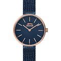 Женские кварцевые часы Slazenger — это стильный аксессуар с круглым корпусом и изящным браслетом миланского плетения. Корпус диаметром 30 мм и толщиной 8 мм выполнен из суперметалла с IP-покрытиемIP-покрытиеМетод ионного напыления. Демонстрирует повышенную устойчивость к истиранию, окислению и химическим веществам. Под воздействием высокого давления и температуры около 1500°C молекулы металла надёжно соединяются с частицами корпуса часов.. Циферблат синего цвета оформлен индексами и стрелками. Циферблат защищён минеральным стекломМинеральное стеклоМинеральное стекло представляет собой искусственно выращенный минерал кварца. Такое стекло отличается особой устойчивостью к повреждениям и царапинам. Уступает по некоторым качествам сапфировому стеклу.. Механизм — кварцевый. Часы оснащены браслетом из суперметалла миланского плетения с раскладной застёжкойРаскладная застёжкаТакой тип застёжки используется только на браслетах из металла. Она никогда не раскрывается полностью, происходит разделение на 2 и более частей. Раскладывающая застёжка снизит вероятность потери часов к минимуму.. Водонепроницаемость 30 м позволяет использовать часы в повседневных условиях. Идеальный выбор для тех, кто ценит элегантность и качество.