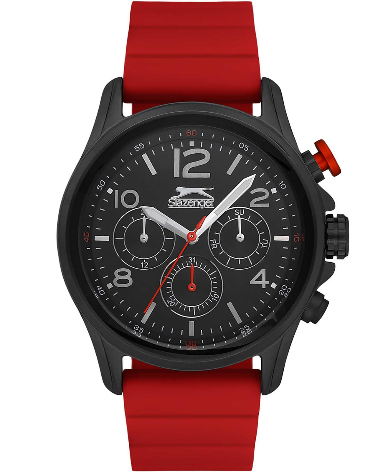 Часы Slazenger SL.09.6552.2.02 воплощают в себе элегантность и практичность, идеально подходящие для современных мужчин. Черный циферблат, защищенный минеральным стекломМинеральное стеклоМинеральное стекло представляет собой искусственно выращенный минерал кварца. Такое стекло отличается особой устойчивостью к повреждениям и царапинам. Уступает по некоторым качествам сапфировому стеклу., заключен в такой же черный корпус диаметром 48 мм, который изготовлен из прочного суперметалла с IP-покрытиемIP-покрытиеМетод ионного напыления. Демонстрирует повышенную устойчивость к истиранию, окислению и химическим веществам. Под воздействием высокого давления и температуры около 1500°C молекулы металла надёжно соединяются с частицами корпуса часов.. Надежный кварцевый механизм обеспечивает точность, а водозащита 5 ATM делает их устойчивыми к воздействию воды. Силиконовый ремень со стандартной застежкой подчеркивает современный стиль и комфортно сидит на запястье. Часы оснащены 24-часовым указателем времени, а также функциями отображения даты и дня недели. Люминесцентное покрытиеЛюминесцентное покрытиеПозволяет считывать показания времени в темноте. Производители наносят на стрелки, часовые индексы, безель или поверхность циферблата светонакопительный состав, дающий холодное свечение. на стрелках обеспечивает отличную видимость в темноте.