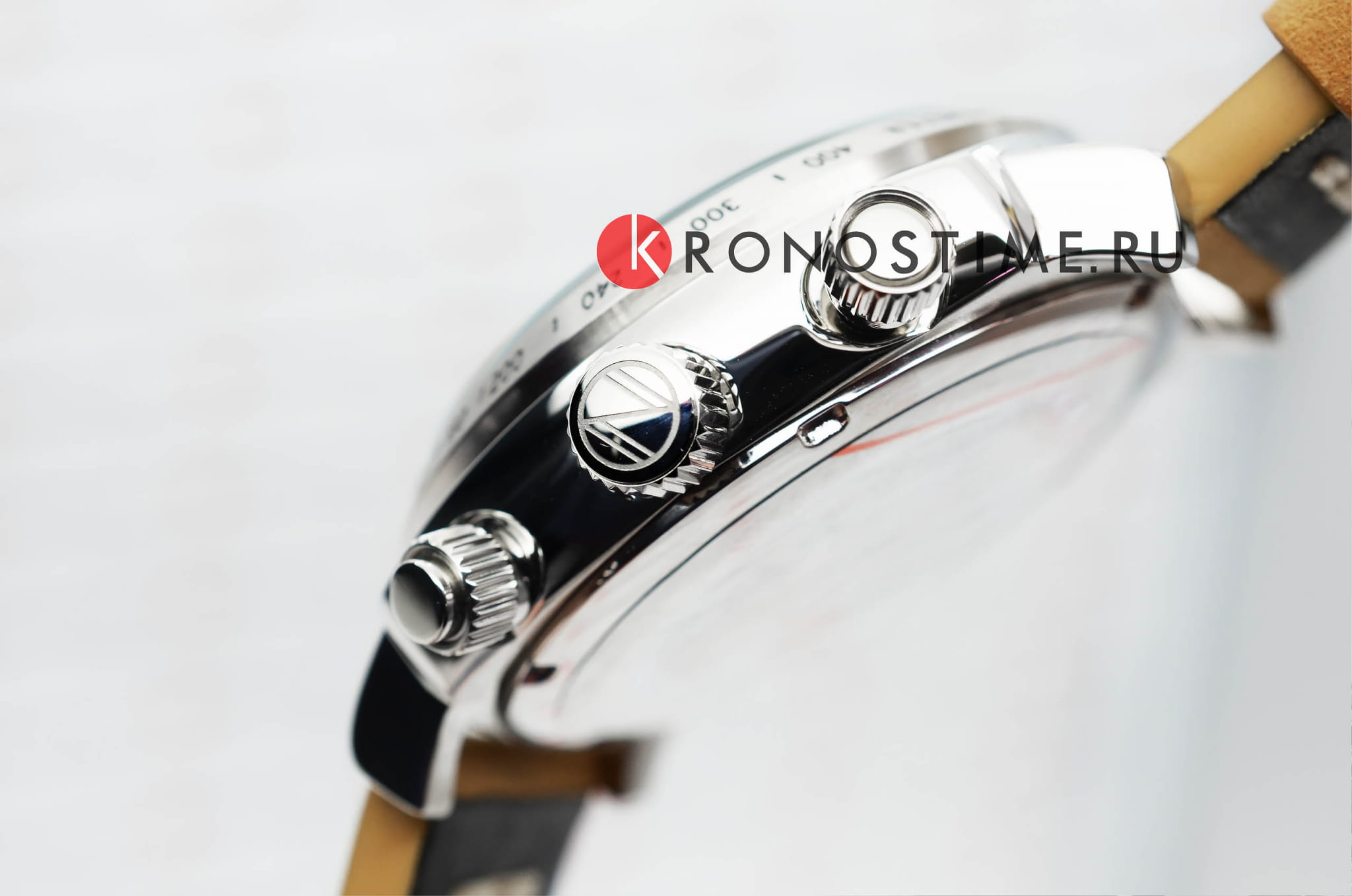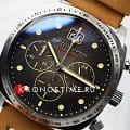 Мужской кварцевый хронографХронографФункция позволяет измерять отрезки времени с особой точностью: часы, минуты, секунды. Верным признаком хронографа является наличие на циферблате 3 дополнительных окошек-счётчиков. с секундомеромСекундомерСекундоме́р — прибор, способный измерять интервалы времени с точностью до долей секунды. и тахиметромТахиметрРазмеченная шкала, располагается на ободке или безеле часов. Тахиметр позволяет рассчитать скорость на определённом участке пути, расстояние измеряется в километрах или милях.. Калибр механизма TMI VK73. Центральные часовая и минутная стрелки, секундная стрелка вынесена на малый циферблат. Большая дата в позиции 12 часов. 12/24х часовой формат времени. Корпус выполнен из нержавеющей стали. Коричневый кожаный ремешок шириной 22 мм, стандартная застежка. Циферблат с люминесцентным покрытиемЛюминесцентное покрытиеПозволяет считывать показания времени в темноте. Производители наносят на стрелки, часовые индексы, безель или поверхность циферблата светонакопительный состав, дающий холодное свечение. стрелок и меток, дополнен выпуклым минеральным стекломМинеральное стеклоМинеральное стекло представляет собой искусственно выращенный минерал кварца. Такое стекло отличается особой устойчивостью к повреждениям и царапинам. Уступает по некоторым качествам сапфировому стеклу. , устойчивым к мелким механическим повреждениям. Водостойкость WR 100 (плавание без погружения).