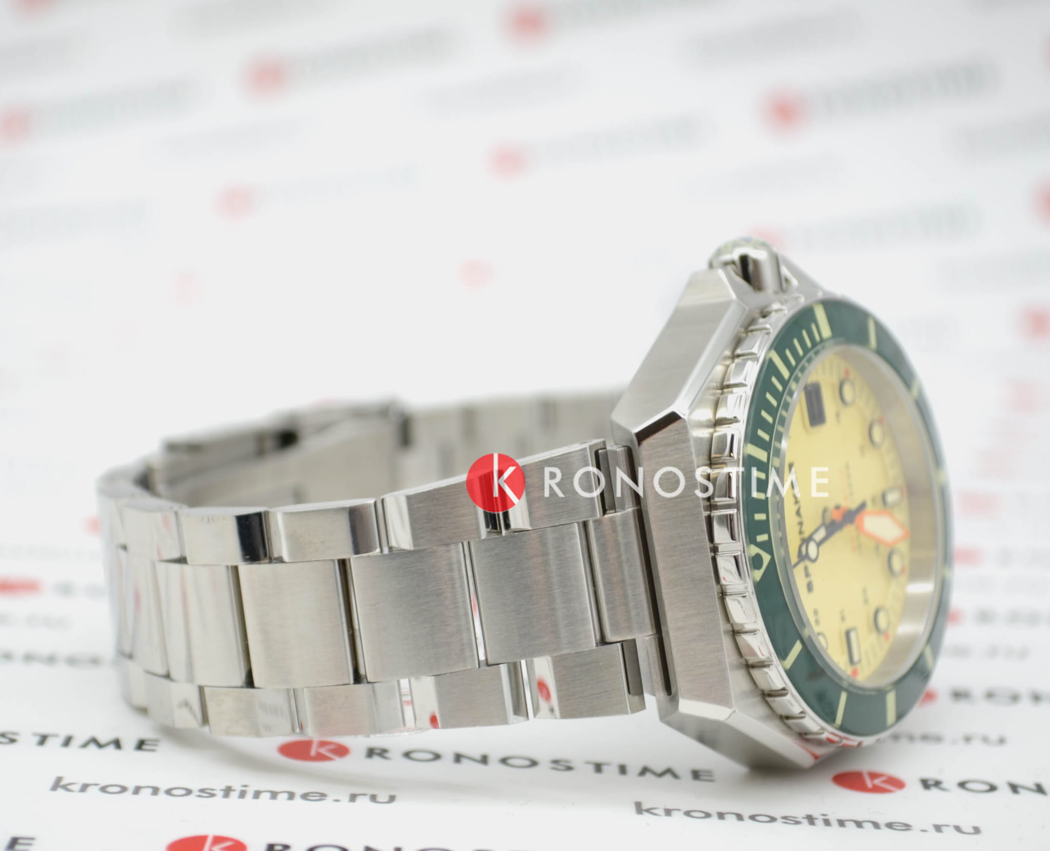 Мужские итальянские механические часы с автоподзаводом Spinnaker Dumas SP-5081-CC, механический механизм (автоматический калибр) с высокой точностью. Циферблат с люминесцентным покрытиемЛюминесцентное покрытиеПозволяет считывать показания времени в темноте. Производители наносят на стрелки, часовые индексы, безель или поверхность циферблата светонакопительный состав, дающий холодное свечение. стрелок, меток и безеляБезельВнешний ободок, закрепляющий стекло. В спортивных часах так называется поворотное кольцо с делениями на циферблате, выполняет роль таймера – замеряет отрезки времени на шкале. Неподвижный безель – элемент декора. Однонаправленно вращающийся безель на дайверских часах позволяет фиксировать моменты погружения и выныривания на поверхность. дополнен сапфировым стекломСапфировое стеклоПрочный и надёжный материал из кристалла сапфира синтетического происхождения, характеризующийся особой твёрдостью и устойчивостью к царапинам и повреждениям. с антибликовым покрытием, устойчивым к появлению царапин и обладающее высокой прозрачностью. Класс водозащиты: 300 метров (погружение с аквалангом). Корпус часов изготовлен из нержавеющей стали 316L. Благодаря обновленному безелюБезельВнешний ободок, закрепляющий стекло. В спортивных часах так называется поворотное кольцо с делениями на циферблате, выполняет роль таймера – замеряет отрезки времени на шкале. Неподвижный безель – элемент декора. Однонаправленно вращающийся безель на дайверских часах позволяет фиксировать моменты погружения и выныривания на поверхность. с IP-покрытиемIP-покрытиеМетод ионного напыления. Демонстрирует повышенную устойчивость к истиранию, окислению и химическим веществам. Под воздействием высокого давления и температуры около 1500°C молекулы металла надёжно соединяются с частицами корпуса часов. с более техническим изгибом, мастерство и точность изготовления часов Spinnaker Watches демонстрируются в безелеБезельВнешний ободок, закрепляющий стекло. В спортивных часах так называется поворотное кольцо с делениями на циферблате, выполняет роль таймера – замеряет отрезки времени на шкале. Неподвижный безель – элемент декора. Однонаправленно вращающийся безель на дайверских часах позволяет фиксировать моменты погружения и выныривания на поверхность. из закаленного стекла. Стальной браслет на раскладной застёжкеРаскладная застёжкаТакой тип застёжки используется только на браслетах из металла. Она никогда не раскрывается полностью, происходит разделение на 2 и более частей. Раскладывающая застёжка снизит вероятность потери часов к минимуму..