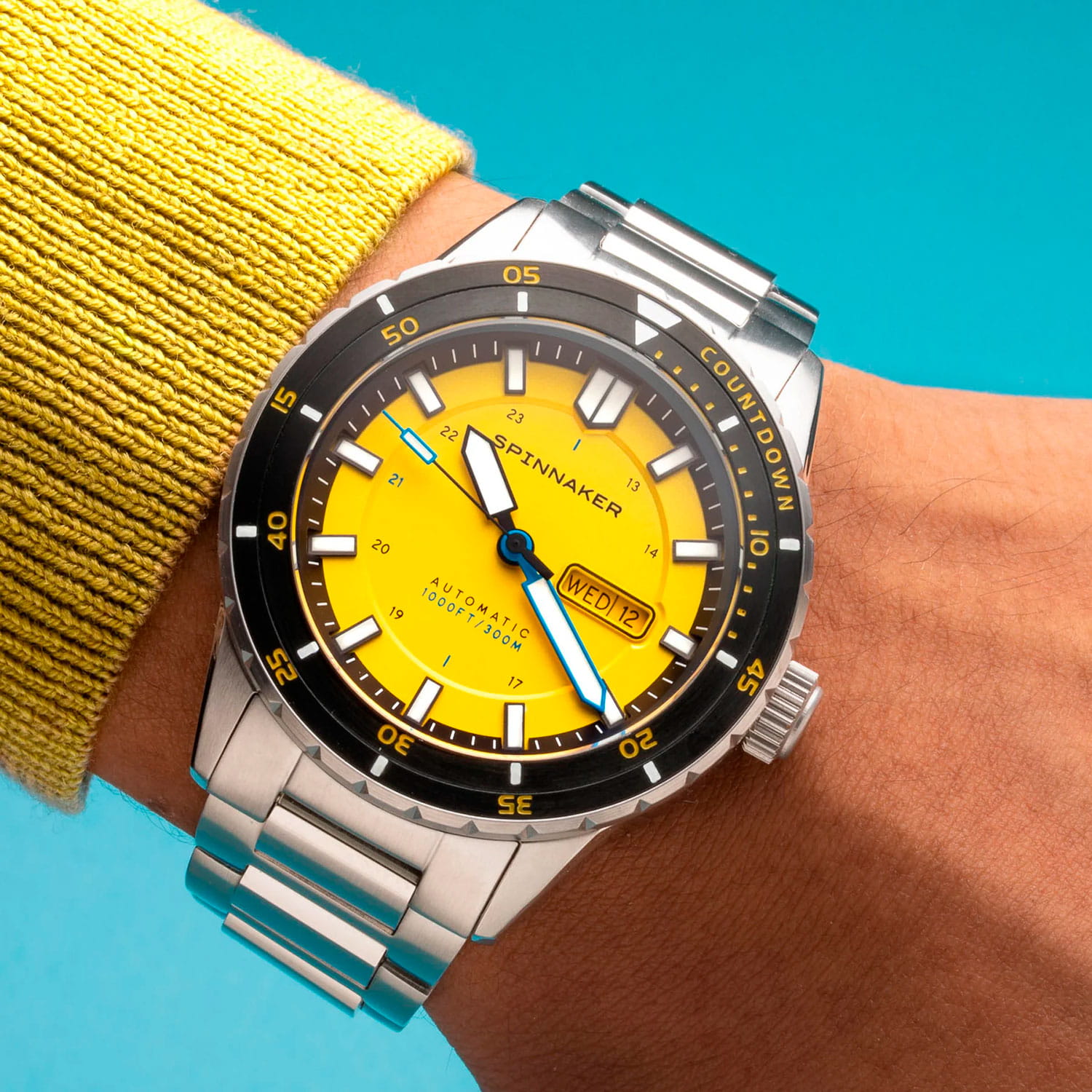 Мужские итальянские часы Spinnaker Hass SP-5099-33 с надёжным автоматическим механизмом. Сапфировое стеклоСапфировое стеклоПрочный и надёжный материал из кристалла сапфира синтетического происхождения, характеризующийся особой твёрдостью и устойчивостью к царапинам и повреждениям. с антибликовым покрытиемАнтибликовое покрытиеСлой оксида металла в 0,13-0,3 микрон, благодаря которому стекло часов не бликует и не отражает свет. Антибликовое покрытие уменьшает отражение света в 10 раз, обеспечивая отличную читаемость показателей циферблата., устойчивое к появлению царапин и обладающее высокой прозрачностью. Класс водозащиты: 300 метров, позволит плавать, нырять и заниматься другими водными видами спорта. Корпус часов изготовлен из нержавеющей стали с поворотным безелемБезельВнешний ободок, закрепляющий стекло. В спортивных часах так называется поворотное кольцо с делениями на циферблате, выполняет роль таймера – замеряет отрезки времени на шкале. Неподвижный безель – элемент декора. Однонаправленно вращающийся безель на дайверских часах позволяет фиксировать моменты погружения и выныривания на поверхность. с IP-покрытиемIP-покрытиеМетод ионного напыления. Демонстрирует повышенную устойчивость к истиранию, окислению и химическим веществам. Под воздействием высокого давления и температуры около 1500°C молекулы металла надёжно соединяются с частицами корпуса часов.. Браслет выполнен из нержавеющей стали на раскладной застёжкеРаскладная застёжкаТакой тип застёжки используется только на браслетах из металла. Она никогда не раскрывается полностью, происходит разделение на 2 и более частей. Раскладывающая застёжка снизит вероятность потери часов к минимуму.. Стрелки и метки с люминесцентным покрытиемЛюминесцентное покрытиеПозволяет считывать показания времени в темноте. Производители наносят на стрелки, часовые индексы, безель или поверхность циферблата светонакопительный состав, дающий холодное свечение.. Окошко дня недели и даты находится в положении 3 часа.