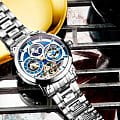 Мужские наручные часы Stührling Original 371B.02 из коллекции Luciano Automatic Skeleton сочетают в себе классический дизайн и современные технологии . Модель оснащена механическим механизмом с автоподзаводом, что гарантирует точность хода без необходимости ручного завода . Корпус часов диаметром 47 мм изготовлен из нержавеющей стали с комбинацией полированной и матовой отделки, что подчеркивает элегантность модели . Защиту циферблата обеспечивает прочное стекло KrysternaKrysternaKrysterna — инновационное стекло для наручных часов. Благодаря уникальной структуре, Krysterna объединяет ключевые преимущества двух материалов: твердость сапфира, защищающую от царапин, и гибкость минерального стекла, обеспечивающую устойчивость к деформациям. Такая комбинация делает его идеальным решением для часов, подверженных экстремальным нагрузкам, сохраняя при этом оптическую прозрачность., известное своей устойчивостью к царапинам и механическим повреждениям . Циферблат выполнен в стиле , что позволяет наблюдать за работой внутреннего механизма и демонстрирует сложность инженерного решения . Такой дизайн делает модель не только функциональной, но и стильной, привлекая внимание ценителей сложных технических решений. Браслет из того же материала на раскладной застёжкеРаскладная застёжкаТакой тип застёжки используется только на браслетах из металла. Она никогда не раскрывается полностью, происходит разделение на 2 и более частей. Раскладывающая застёжка снизит вероятность потери часов к минимуму.. Водонепроницаемость модели достигает 5 атмосфер (50 метров), что позволяет использовать их в повседневных условиях, включая контакт с водой, например, при мытье рук или дожде . Заводная головка с системой завинчивания обеспечивает дополнительную защиту механизма от внешних воздействий.