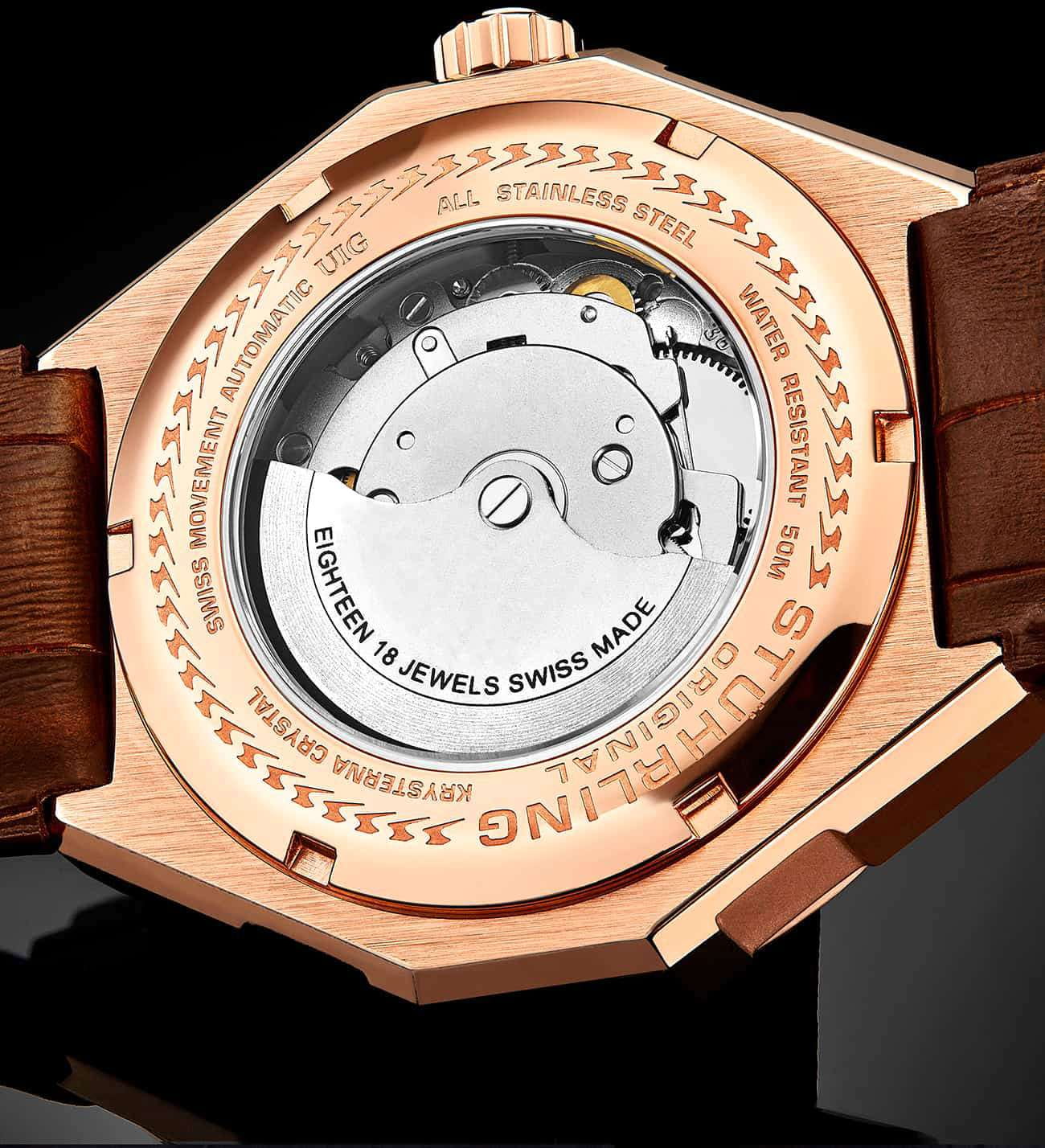 Stuhrling 379.05 — футуристические мужские часы, сочетающие смелый инженерный дизайн и надёжную механику. Архитектурный циферблат с многослойной структурой придаёт модели динамику и глубину. Стрелки и метки с люминесцентным покрытиемЛюминесцентное покрытиеПозволяет считывать показания времени в темноте. Производители наносят на стрелки, часовые индексы, безель или поверхность циферблата светонакопительный состав, дающий холодное свечение.. Корпус из нержавеющей стали с PVD-покрытиемPVDУльтратонкое покрытие наносится в технике вакуумного напыления, сочетает в себе нитрид титана особой прочности со слоем золота или оксида хрома. Несёт в себе декоративную или защитную функцию. выполнен с филигранной обработкой граней, подчёркивая технический характер часов. Прочное стекло KrysternaKrysternaKrysterna — инновационное стекло для наручных часов. Благодаря уникальной структуре, Krysterna объединяет ключевые преимущества двух материалов: твердость сапфира, защищающую от царапин, и гибкость минерального стекла, обеспечивающую устойчивость к деформациям. Такая комбинация делает его идеальным решением для часов, подверженных экстремальным нагрузкам, сохраняя при этом оптическую прозрачность. защищает сложную конструкцию от повреждений, сохраняя идеальную прозрачность. Кожаный ремень с контрастной строчкой и стандартной застежкой, обеспечивает комфорт и надёжную посадку. Stuhrling — выбор для тех, кто ценит оригинальность и технологичный стиль, где каждая деталь работает на впечатление.