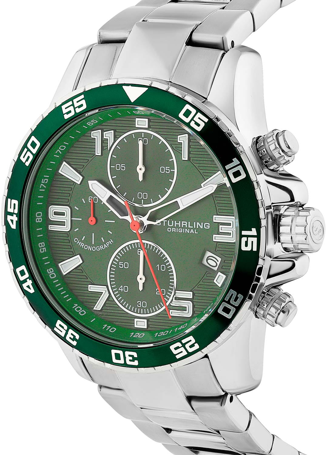 Stuhrling 3957.3 — мощные мужские часы с выразительным спортивным характером и динамичным дизайном. Корпус из нержавеющей стали гармонично сочетается с циферблатом, оформленным рельефным узором и контрастными счётчиками хронографаХронографФункция позволяет измерять отрезки времени с особой точностью: часы, минуты, секунды. Верным признаком хронографа является наличие на циферблате 3 дополнительных окошек-счётчиков.. Широкий безельБезельВнешний ободок, закрепляющий стекло. В спортивных часах так называется поворотное кольцо с делениями на циферблате, выполняет роль таймера – замеряет отрезки времени на шкале. Неподвижный безель – элемент декора. Однонаправленно вращающийся безель на дайверских часах позволяет фиксировать моменты погружения и выныривания на поверхность. с PVD-покрытиемPVDУльтратонкое покрытие наносится в технике вакуумного напыления, сочетает в себе нитрид титана особой прочности со слоем золота или оксида хрома. Несёт в себе декоративную или защитную функцию. подчёркивает брутальный стиль модели, а стрелки и метки с люминесцентным покрытиемЛюминесцентное покрытиеПозволяет считывать показания времени в темноте. Производители наносят на стрелки, часовые индексы, безель или поверхность циферблата светонакопительный состав, дающий холодное свечение. обеспечивают идеальную читаемость в любых условиях. Прочное стекло KrysternaKrysternaKrysterna — инновационное стекло для наручных часов. Благодаря уникальной структуре, Krysterna объединяет ключевые преимущества двух материалов: твердость сапфира, защищающую от царапин, и гибкость минерального стекла, обеспечивающую устойчивость к деформациям. Такая комбинация делает его идеальным решением для часов, подверженных экстремальным нагрузкам, сохраняя при этом оптическую прозрачность. устойчиво к царапинам, сохраняя прозрачность и блеск. Завершает образ стальной браслет с раскладной застёжкойРаскладная застёжкаТакой тип застёжки используется только на браслетах из металла. Она никогда не раскрывается полностью, происходит разделение на 2 и более частей. Раскладывающая застёжка снизит вероятность потери часов к минимуму., гарантирующий комфорт и надёжную фиксацию. Stuhrling — стильная и функциональная модель для уверенных мужчин, ценящих точность и энергию в каждой детали.