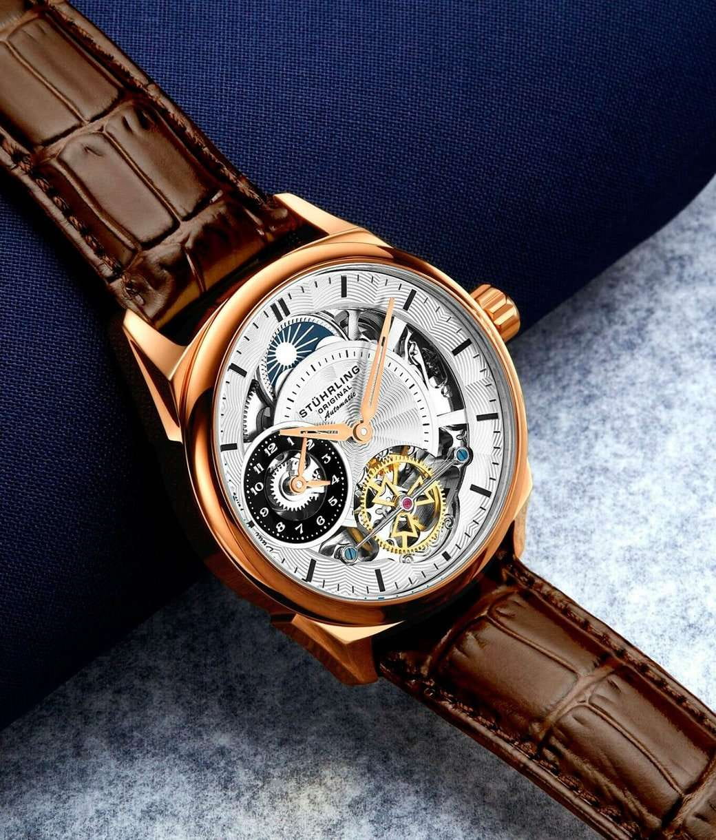 Stuhrling 943A.03 — эффектные мужские часы с открытым механическим сердцем, воплощающие искусство часового мастерства. Полностью скелетонизированный циферблат демонстрирует работу механизма, подчёркивая эстетику точности и движения. Корпус из нержавеющей стали с PVD-покрытиемPVDУльтратонкое покрытие наносится в технике вакуумного напыления, сочетает в себе нитрид титана особой прочности со слоем золота или оксида хрома. Несёт в себе декоративную или защитную функцию. гармонирует с ремнём из натуральной кожи, придавая модели классическую солидность. Металлизированные стрелки и метки обеспечивают читаемость, а прочное стекло KrysternaKrysternaKrysterna — инновационное стекло для наручных часов. Благодаря уникальной структуре, Krysterna объединяет ключевые преимущества двух материалов: твердость сапфира, защищающую от царапин, и гибкость минерального стекла, обеспечивающую устойчивость к деформациям. Такая комбинация делает его идеальным решением для часов, подверженных экстремальным нагрузкам, сохраняя при этом оптическую прозрачность. надёжно защищает конструкцию от повреждений. Stuhrling — это сочетание прозрачной механики, изысканного дизайна и утончённого стиля для ценителей настоящей инженерной красоты.