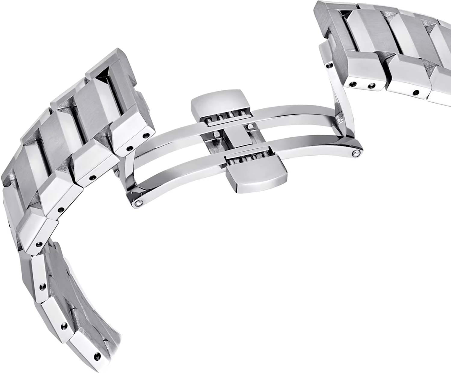 Часы Swarovski 5641297 представляют собой гармоничное сочетание современного стиля и функциональности, идеально подходящее для тех, кто ценит элегантные аксессуары. Эти швейцарские кварцевые часы с хронографомХронографФункция позволяет измерять отрезки времени с особой точностью: часы, минуты, секунды. Верным признаком хронографа является наличие на циферблате 3 дополнительных окошек-счётчиков. и секундомеромСекундомерСекундоме́р — прибор, способный измерять интервалы времени с точностью до долей секунды. заключены в прочный стальной корпус. Серебристый циферблат, украшенный кристаллами Swarovski и метками в виде штрихов, придает часам изысканный вид и подчеркивает их утонченность. Ограненный кристальный безельБезельВнешний ободок, закрепляющий стекло. В спортивных часах так называется поворотное кольцо с делениями на циферблате, выполняет роль таймера – замеряет отрезки времени на шкале. Неподвижный безель – элемент декора. Однонаправленно вращающийся безель на дайверских часах позволяет фиксировать моменты погружения и выныривания на поверхность. с римскими и арабскими цифрами добавляет оригинальности и делает часы не только стильными, но и удобными для считывания времени. Минеральное стеклоМинеральное стеклоМинеральное стекло представляет собой искусственно выращенный минерал кварца. Такое стекло отличается особой устойчивостью к повреждениям и царапинам. Уступает по некоторым качествам сапфировому стеклу. обеспечивает надежную защиту циферблата, а водозащита 50 WR позволяет не беспокоиться о случайных контактах с водой в повседневной жизни. Стальной браслет с застежкой «бабочка»Застёжка "бабочка"Такой вид застёжки дополняется предохранителями, помогающими избежать случайного раскрытия браслета. Обладают изящным исполнением. обеспечивает комфортное ношение и надежную фиксацию на запястье. Заводная головка, украшенная кристаллом круглой огранки, придает дополнительную изящность и завершенность общему виду. С диаметром корпуса 39 мм и длиной браслета 16 см, эти часы станут идеальным аксессуаром для тех, кто ценит качество, стиль и функциональность в одном изделии.