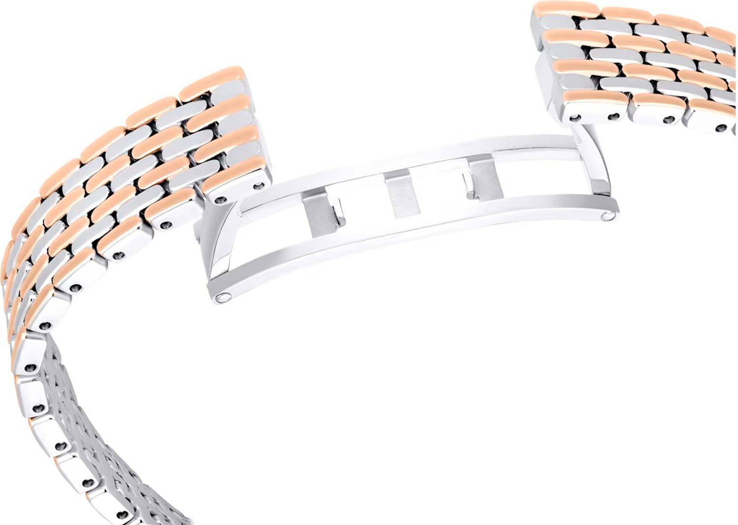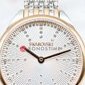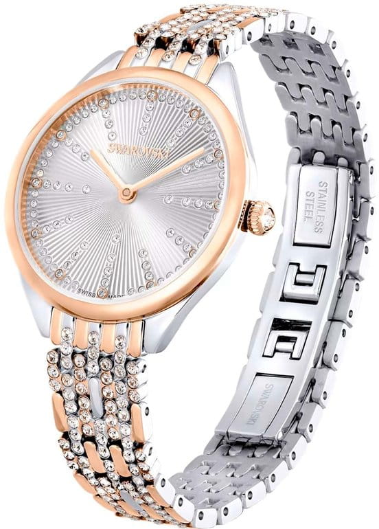 Часы Swarovski 5649987– это воплощение изысканного дизайна и функциональности, созданное для тех, кто ценит красоту и точность. Серебристый круглый корпус из нержавеющей стали оснащен безелемБезельВнешний ободок, закрепляющий стекло. В спортивных часах так называется поворотное кольцо с делениями на циферблате, выполняет роль таймера – замеряет отрезки времени на шкале. Неподвижный безель – элемент декора. Однонаправленно вращающийся безель на дайверских часах позволяет фиксировать моменты погружения и выныривания на поверхность. с PVDPVDУльтратонкое покрытие наносится в технике вакуумного напыления, сочетает в себе нитрид титана особой прочности со слоем золота или оксида хрома. Несёт в себе декоративную или защитную функцию. покрытием, украшенным паве из тридцати мерцающих кристаллов. Под минеральным стекломМинеральное стеклоМинеральное стекло представляет собой искусственно выращенный минерал кварца. Такое стекло отличается особой устойчивостью к повреждениям и царапинам. Уступает по некоторым качествам сапфировому стеклу. открывается серебристый циферблат украшен гильошированным узором и кристаллами для индексных меток. Рифленая заводная головка украшена кристаллом круглой огранки. Стальной браслет с частичным PVDPVDУльтратонкое покрытие наносится в технике вакуумного напыления, сочетает в себе нитрид титана особой прочности со слоем золота или оксида хрома. Несёт в себе декоративную или защитную функцию. покрытием и застежкой «бабочка»Застёжка "бабочка"Такой вид застёжки дополняется предохранителями, помогающими избежать случайного раскрытия браслета. Обладают изящным исполнением. , декорирован кристаллами Swarovski. Водозащита 50WR делает их устойчивыми к влаге, позволяя наслаждаться стильным аксессуаром в любых условиях.