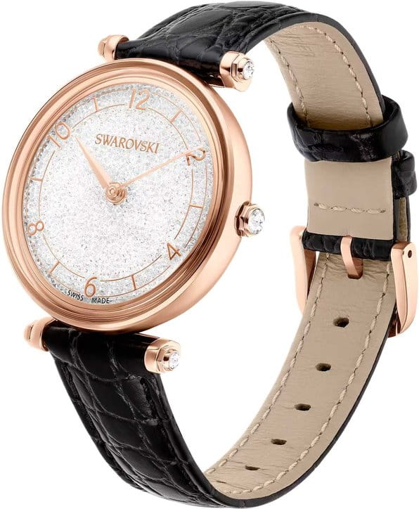 Часы Swarovski 5653359 представляют собой идеальное сочетание роскоши и изысканности, которые подчеркнут вашу индивидуальность и стиль. Эти швейцарские часы оснащены надежным кварцевым механизмом, гарантирующим точность времени. Круглый корпус из нержавеющей стали с PVDPVDУльтратонкое покрытие наносится в технике вакуумного напыления, сочетает в себе нитрид титана особой прочности со слоем золота или оксида хрома. Несёт в себе декоративную или защитную функцию. покрытием оттенка розового золота создает элегантный и утонченный образ. Под куполообразным минеральным стекломМинеральное стеклоМинеральное стекло представляет собой искусственно выращенный минерал кварца. Такое стекло отличается особой устойчивостью к повреждениям и царапинам. Уступает по некоторым качествам сапфировому стеклу. расположен серебристый циферблат, декорированный примерно тысячью сверкающих кристаллов Swarovski. Метки в виде штрихов и арабских цифр добавляют классический акцент, а граненая заводная головка украшена кристаллом круглой огранки. Ремешок из натуральной итальянской телячьей кожи черного цвета, с тиснением под кожу ящерицы, обеспечивает комфорт и стиль, а стандартная застежка гарантирует надежную фиксацию на запястье. Водозащита 50WR позволяет носить часы в различных условиях, защищая их от воздействия влаги. С диаметром корпуса 35 мм и длиной ремешка 16,5 см, эти часы идеально подходят для любого случая, создавая выразительный и эффектный образ.