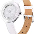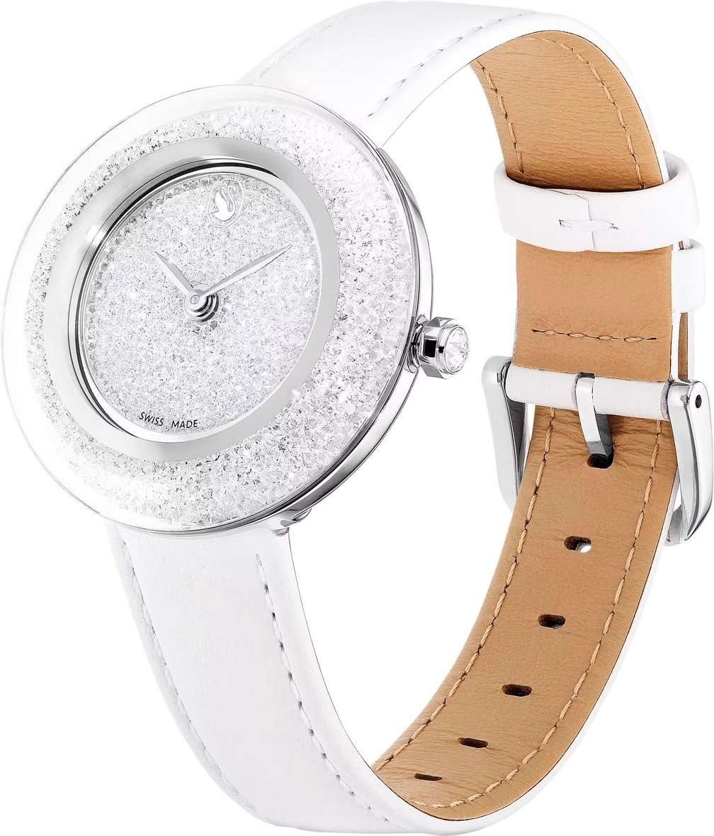 Элегантные швейцарские часы Swarovski 5668887 станут идеальным аксессуаром для тех, кто ценит стиль и изысканность. Эти часы оснащены кварцевым механизмом, что гарантирует точность и надежность в повседневной жизни. Корпус из стали имеет классическую круглую форму, а белоснежный циферблат, лишенный меток, создает чистый и утонченный образ. Особое внимание привлекают 3460 прозрачных кристаллов Swarovski, которые украшают циферблат, корпус и безельБезельВнешний ободок, закрепляющий стекло. В спортивных часах так называется поворотное кольцо с делениями на циферблате, выполняет роль таймера – замеряет отрезки времени на шкале. Неподвижный безель – элемент декора. Однонаправленно вращающийся безель на дайверских часах позволяет фиксировать моменты погружения и выныривания на поверхность., создавая ослепительный блеск. В положении 12 часов расположился культовый логотип Swarovski в виде лебедя, подчеркивающий уникальность дизайна. Мечевидные стрелки в стиле Sword добавляют элегантности, а граненая заводная головка с кристаллом круглой огранки завершает образ. Ремешок из натуральной итальянской телячьей кожи белого цвета обеспечивает комфортное ношение и дополняет общий стиль часов. Классическая застежка с логотипом Swarovski гарантирует надежную фиксацию. Сапфировое стеклоСапфировое стеклоПрочный и надёжный материал из кристалла сапфира синтетического происхождения, характеризующийся особой твёрдостью и устойчивостью к царапинам и повреждениям. защищает часы от царапин и других повреждений, а водозащита 50WR позволяет не беспокоиться о случайных попаданиях воды. Диаметр корпуса составляет 33 мм, а длина ремешка — 16,5 см, что делает их идеальными для изящного запястья.