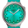 Часы Swatch SB07S100 — это стильный и современный аксессуар для тех, кто ценит лёгкость и комфорт. Часы идеально подойдут как для мужчин, так и для женщин. На бирюзовом циферблате с радиальной полировкой этих крупных часов размещены светящиеся в темноте индексы, черные цифры и минутная шкала, серебристые стрелки со светящимися в темноте благодаря люминесцентному покрытиюЛюминесцентное покрытиеПозволяет считывать показания времени в темноте. Производители наносят на стрелки, часовые индексы, безель или поверхность циферблата светонакопительный состав, дающий холодное свечение., отметками на минутной и часовой. Матированные методом пескоструйной обработки корпус из нержавеющей стали эффектно контрастируют с фактурным бирюзовым ремешком с тренчиками в тон и стальной полупряжкой. Водозащита 30 метров делает часы практичными для повседневного использования. Эти часы подойдут для повседневного ношения и станут ярким акцентом в вашем наряде.