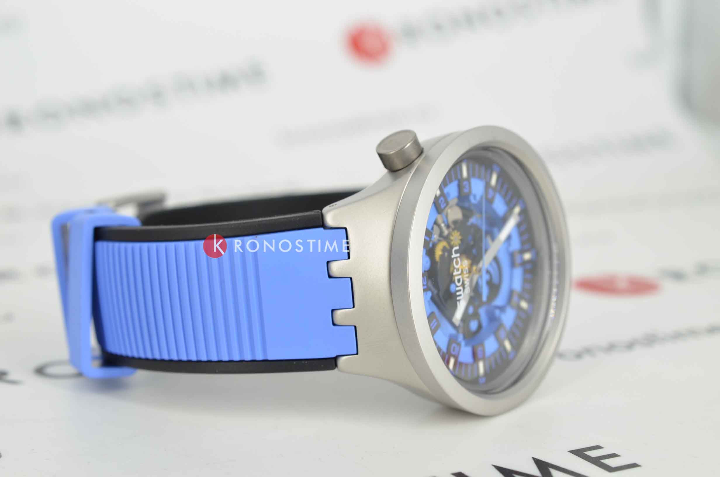 Часы Swatch SB07S106 — это стильный и современный аксессуар для тех, кто ценит лёгкость и комфорт. Часы идеально подойдут как для мужчин, так и для женщин. Эта массивная модель с металлическим корпусом, матированным методом пескоструйной обработки, имеет черный циферблат, открывающий механизм, и светящиеся в темноте стрелки благодаря люминесцентному покрытиюЛюминесцентное покрытиеПозволяет считывать показания времени в темноте. Производители наносят на стрелки, часовые индексы, безель или поверхность циферблата светонакопительный состав, дающий холодное свечение.. Крупные часы закреплены на прочном структурированном ремешке лазурной расцветки с двумя тренчиками. Водозащита 30 метров делает часы практичными для повседневного использования. Эти часы подойдут для повседневного ношения и станут ярким акцентом в вашем наряде.