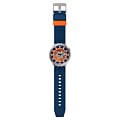Часы Swatch SB07S114 — это стильный и современный аксессуар для тех, кто ценит лёгкость и комфорт. Часы идеально подойдут как для мужчин, так и для женщин. Эти крупные темно-синие часы с оранжевым и серебристым принтом на открытом циферблате заключены в матированный стальной корпус. Отсчет времени ведут синие часовая и минутная стрелки, светящиеся в темноте благодаря люминесцентному покрытиюЛюминесцентное покрытиеПозволяет считывать показания времени в темноте. Производители наносят на стрелки, часовые индексы, безель или поверхность циферблата светонакопительный состав, дающий холодное свечение., а также белая секундная стрелка. Темно-синий ремешок с оранжевым и синим тренчиками и стальной полупряжкой прекрасно дополняет модель. Водозащита 30 метров делает часы практичными для повседневного использования. Эти часы подойдут для повседневного ношения и станут ярким акцентом в вашем наряде.