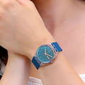 Часы Swatch SO28K700 BLUE AWAY — это стильный и современный аксессуар, который идеально подходит для повседневного ношения. Они имеют темно-бирюзовый ремешок и циферблат, покрытый гипнотическим стеклом Swatch Solar Spectrum. Корпус часов - из биоматериала. Оранжевые стрелки и цифры контрастируют с темно-зеленым циферблатом часов, а оранжевое окошко даты и дня видно на 3 часах. Стекло часов изготовлено из прочного хезалита, который устойчив к царапинам и ударам, что гарантирует долговечность изделия. Внутри часов установлен надежный кварцевый механизм, который обеспечивает точность хода. Эти часы водонепроницаемы до 30 метров, что позволяет не беспокоиться о случайных брызгах или дождевых каплях. Ремешок часов выполнен из силикона и имеет регулируемую длину, застежка классическая из алюминия. Swatch SO28K700 — это идеальный выбор для тех, кто ценит сочетание стиля, комфорта и функциональности в одном аксессуаре.