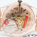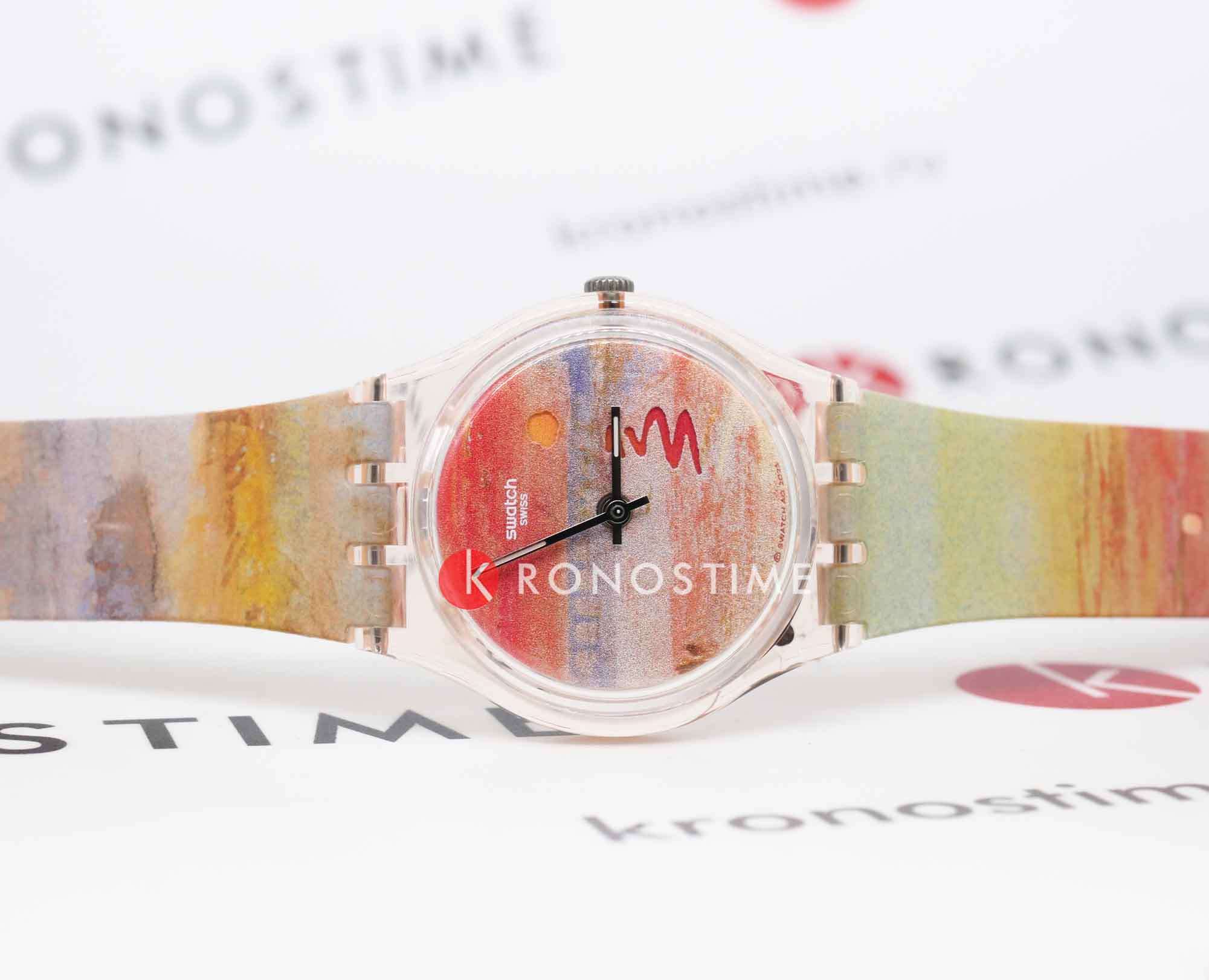 Часы Swatch SO28Z700 — эффектный и надежный аксессуар. Эти часы из коллекции Swatch x Tate Gallery обладают прозрачным глянцево-розовым корпусом и стеклом из биоматериала. Циферблат и матово-розовый ремешок украшены принтом с репродукцией картины Тёрнера (JMW Turner) «Алый закат» («The Scarlet Sunset»). Время отсчитывают серебристые стрелки с люминесцентным покрытиемЛюминесцентное покрытиеПозволяет считывать показания времени в темноте. Производители наносят на стрелки, часовые индексы, безель или поверхность циферблата светонакопительный состав, дающий холодное свечение., которые светятся в темноте, а солнце на циферблате меняет цвет в течение дня благодаря разноцветному календарному колесу. На прозрачном матовом ремешке расположен логотип Tate Gallery. Ремешок из силикона на стандартной застёжке. Внутри часов установлен надежный кварцевый механизм, который обеспечивает точность хода. Эти часы водонепроницаемы до 30 метров, что позволяет не беспокоиться о случайных брызгах или дождевых каплях. Swatch SO28Z700 — это идеальный выбор для тех, кто ценит сочетание стиля, комфорта и функциональности в одном аксессуаре.