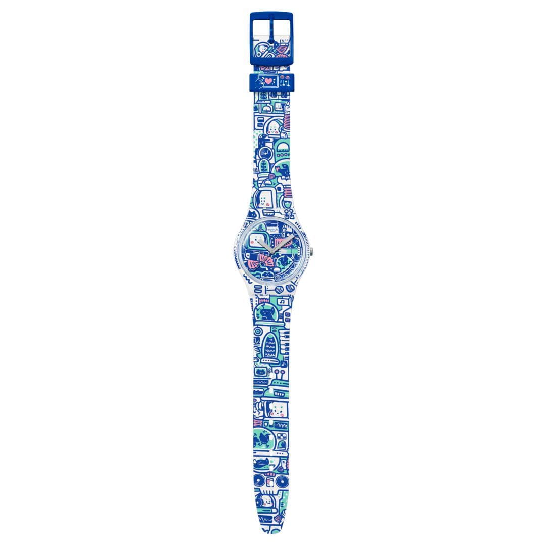 Часы Swatch SO28Z702 — эффектный и надежный аксессуар. Эти веселые часы были созданы в сотрудничестве с уличным художником Бао Хо. Белый циферблат украшен многокрасочным принтом и серебристыми стрелками часов, минут и секунд, все под стеклом из биоматериала. Специальное окно даты и дня месяца также служит индикатором "жизненной силы", который заряжается в течение 7 дней. Матовый белый корпус с темно-синим принтом изготовлен из биоматериала. Матовый белый ремешок с многокрасочным принтом сочетается с матовой темно-синей петлей и пряжкой, также темно-синего цвета. Ремешок из силикона на стандартной застёжке. Внутри часов установлен надежный кварцевый механизм, который обеспечивает точность хода. Эти часы водонепроницаемы до 30 метров, что позволяет не беспокоиться о случайных брызгах или дождевых каплях. Swatch SO28Z702 — это идеальный выбор для тех, кто ценит сочетание стиля, комфорта и функциональности в одном аксессуаре.