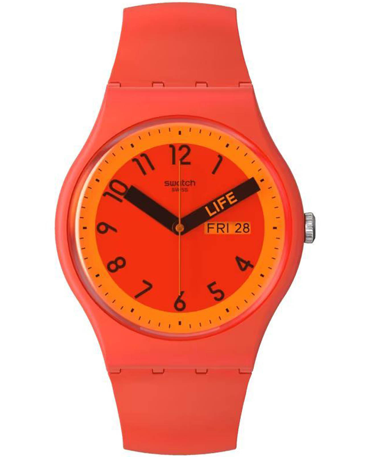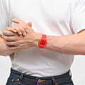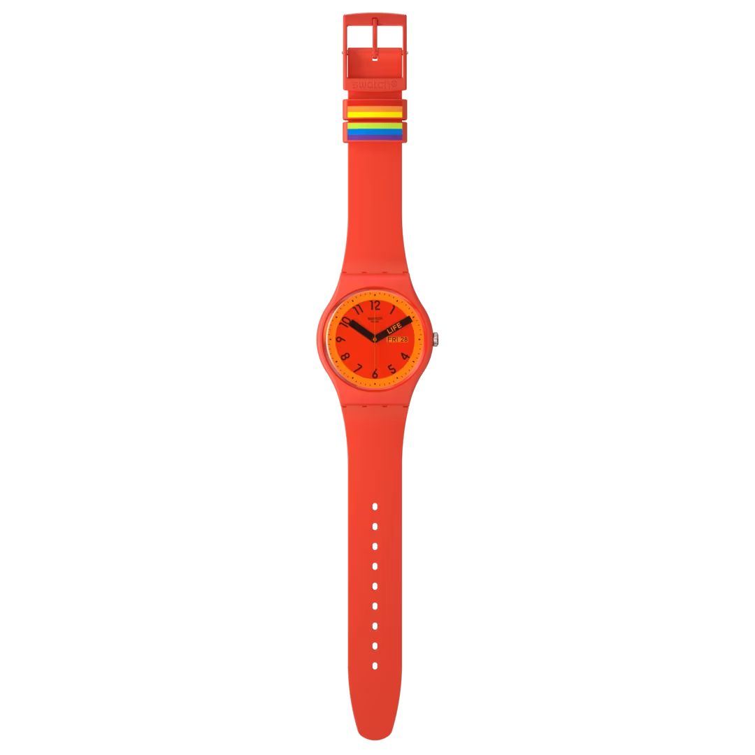 Часы Swatch SO29R705 —  стильный и надежный аксессуар. Эти часы Swatch Pride 2023 Special отличаются циферблатом с красным принтом и красным стеклом из биоматериалов, а также корпусом из тех же материалов. Часовая и минутная стрелки выполнены в черном цвете, при этом минутная стрелка символизирует значение красного цвета в флаге Прайда: жизнь. Ремешок этих красных часов дополнен двумя специальными петлями, которые, соединяясь, образуют радугу. Ремешок силиконовый на классической застежке. Имеется окошко даты и дня недели в положении 3 часа. Внутри часов установлен надежный кварцевый механизм, который обеспечивает точность хода. Эти часы водонепроницаемы до 30 метров, что позволяет не беспокоиться о случайных брызгах или дождевых каплях. Swatch SO29R705 — это идеальный выбор для тех, кто ценит сочетание стиля, комфорта и функциональности в одном аксессуаре.