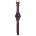 Часы Swatch SO29R707 — стильный и надежный аксессуар. У них темно-коричневый циферблат со светло-фиолетовыми индексами, светло-коричневой минутной шкалой и окном даты и дня недели на 3 часах. Часовая и минутная стрелки имеют люминесцентное покрытиеЛюминесцентное покрытиеПозволяет считывать показания времени в темноте. Производители наносят на стрелки, часовые индексы, безель или поверхность циферблата светонакопительный состав, дающий холодное свечение., с эффектом свечения в темноте, а секундная стрелка цвета розового золота, под стеклом из биоматериала. Матовый бордовый корпус из биоматериала в сочетании с ремешком, петлей и пряжкой также из биопластика завершает дизайн часов. Эти часы водонепроницаемы до 30 метров, что позволяет не беспокоиться о случайных брызгах или дождевых каплях. Swatch SO29R707 — это идеальный выбор для тех, кто ценит сочетание стиля, комфорта и функциональности в одном аксессуаре.