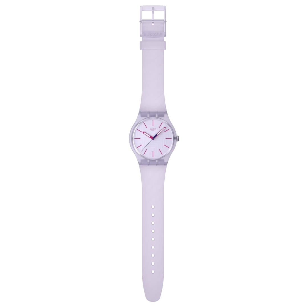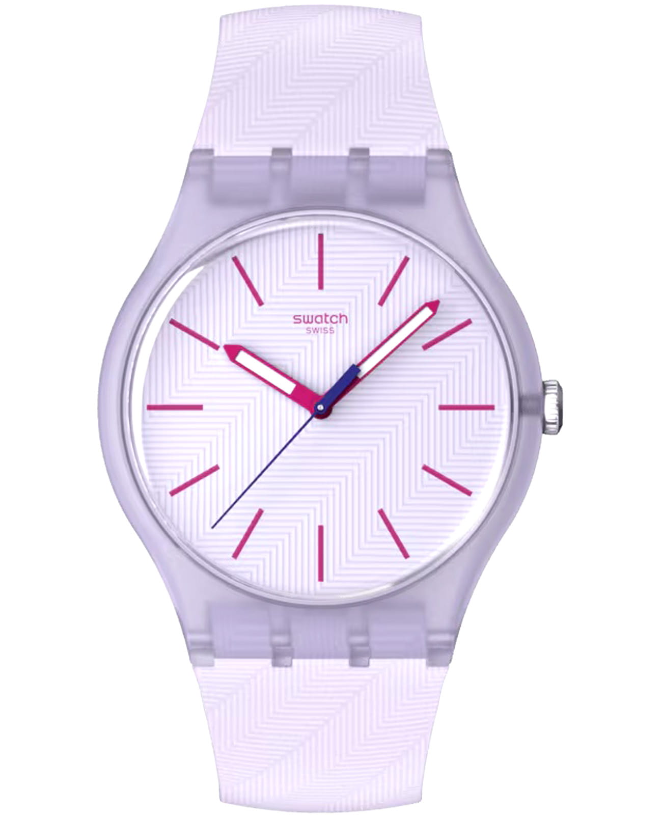 Мужские наручные часы Swatch LAVENDAZE SO29V101 — это стильный и современный аксессуар для тех, кто ценит лёгкость и комфорт. Корпус выполнен из пластика, диаметром 41 мм и толщиной 9.85 мм, что обеспечивает долговечность и утончённый внешний вид. Циферблат защищён органическим стеклом, устойчивым к повреждениям. Модель оснащена кварцевым механизмом, обеспечивающим высокую точность хода. Часовая и минутная стрелки с люминесцентным покрытиемЛюминесцентное покрытиеПозволяет считывать показания времени в темноте. Производители наносят на стрелки, часовые индексы, безель или поверхность циферблата светонакопительный состав, дающий холодное свечение.. Силиконовый текстурированный матово-фиолетовый ремешок на стандартной застёжке гармонично дополняет корпус и обеспечивает комфортное ношение. Водозащита 30 метров позволит защитить корпус от случайных брызг или капель дождя. Эти часы подойдут для повседневного ношения и станут ярким акцентом в вашем наряде.