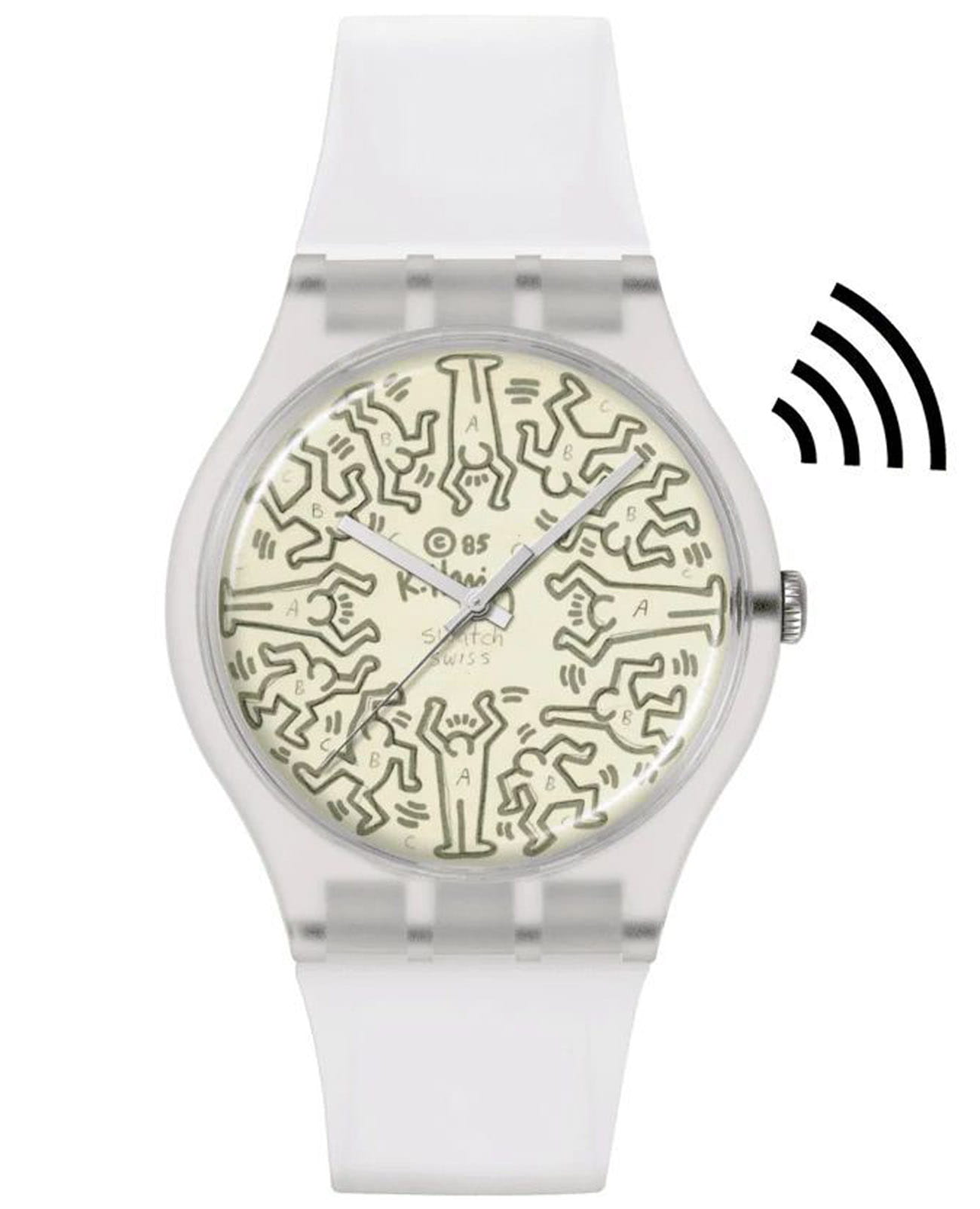 Часы Swatch SO29Z146-5300 —  стильный и удобный аксессуар. Часы поддерживают функцию бесконтактной оплаты SwatchPAY!. Матовый светло-бежевый циферблат этих часов украшен серыми рисунками, подписью и авторскими правами художника Кита Харинга, а также интерпретацией логотипа Swatch. Серебристые часовая, минутная и секундная стрелки защищены стеклом из биоматериала. Матовый прозрачный корпус из биоматериала, а также матовые прозрачные ремешок, петля и пряжка завершают дизайн этих часов. Ремешок силиконовый на стандартной застёжке. Внутри часов установлен надежный кварцевый механизм, который обеспечивает точность хода. Эти часы водонепроницаемы до 30 метров, что позволяет не беспокоиться о случайных брызгах или дождевых каплях. Swatch SO29Z146-5300 — это идеальный выбор для тех, кто ценит сочетание стиля, комфорта и функциональности в одном аксессуаре.