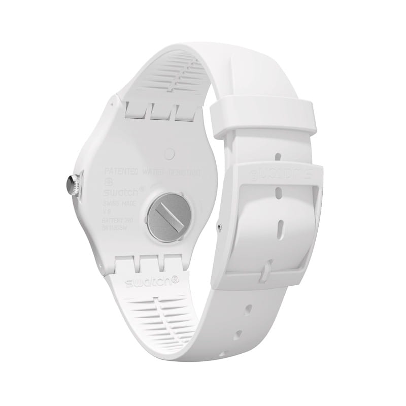 Часы Swatch SUOW701 — это стильный и современный аксессуар для тех, кто ценит лёгкость и комфорт. Часы идеально подойдут как для мужчин, так и для женщин. Элегантный и запоминающийся дизайн, в котором белый цвет создает настроение и атмосферу.  Прочный белый силиконовый ремешок и петелька этих часов сочетаются с прочным корпусом и пряжкой из матово-белого пластика. Белый циферблат украшен тонкими белыми часовыми индексами тон в тон, а в положении "3 часа" - элегантным окошком дня/даты, выполненным белым по светло-серому. На часовую, минутную стрелки белого цвета нанесено люминесцентное покрытиеЛюминесцентное покрытиеПозволяет считывать показания времени в темноте. Производители наносят на стрелки, часовые индексы, безель или поверхность циферблата светонакопительный состав, дающий холодное свечение., которое светится в темноте, создавая необычное изображение. Водозащита 30 метров делает часы практичными для повседневного использования. Эти часы подойдут для повседневного ношения и станут ярким акцентом в вашем наряде.