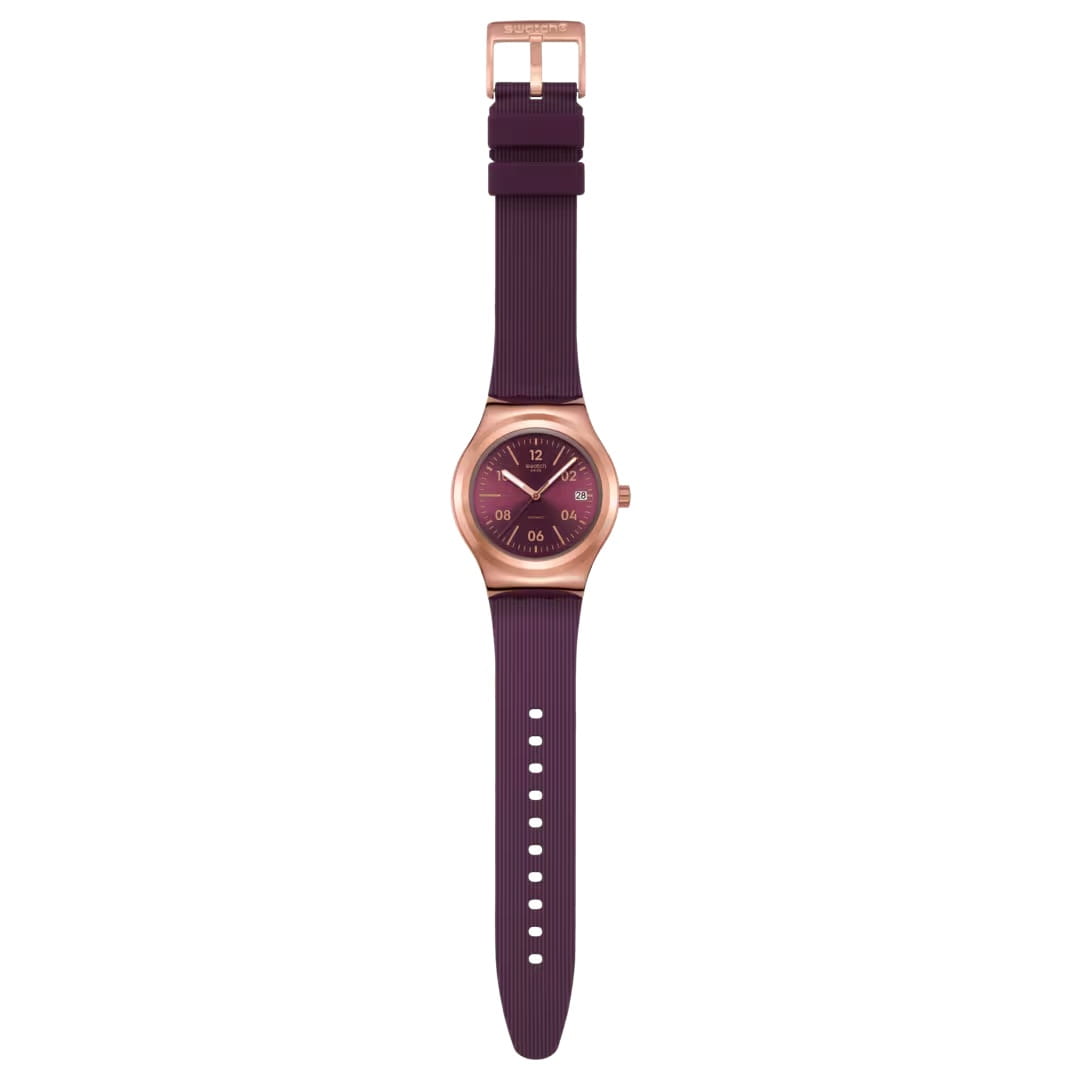 Швейцарские женские механические часы Swatch Burgundy Story YIG401