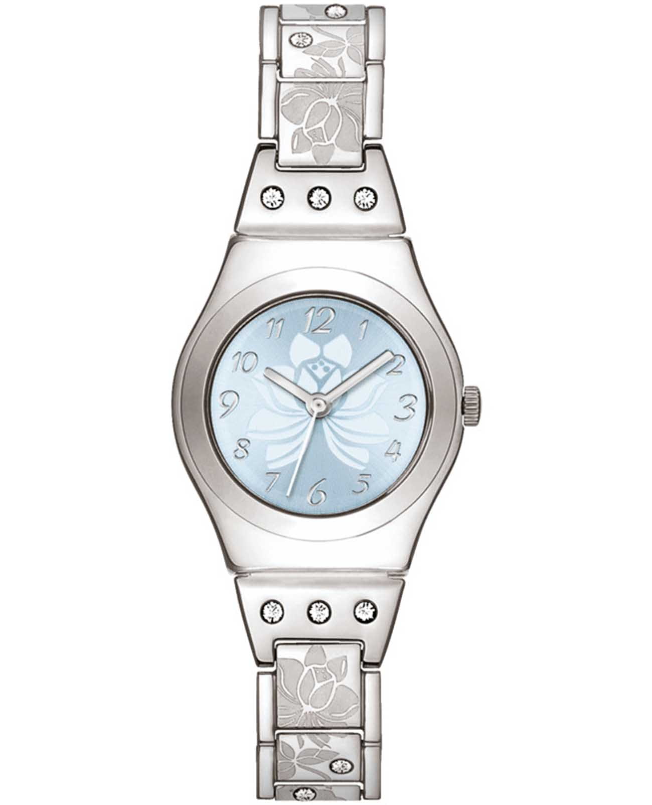 Часы Swatch YSS222G — это стильный и современный аксессуар для тех, кто ценит лёгкость и комфорт. На ремешке из нержавеющей стали этого браслета выгравированы цветы, словно вышитые шелком. Прозрачные светло-голубые кристаллы на браслете и торцевых деталях придают блеск и обрамляют корпус. Синий циферблат, подсвеченный солнцем, дополняет нежную цветочную игру браслета изящным серебряным цветочным узором и арабскими цифрами с серебряной печатью на всех часах. Часовая и минутная стрелки из светоотражающего металла и тонкая белая секундная стрелка указывают время. Водозащита 30 метров делает часы практичными для повседневного использования. Эти часы подойдут для повседневного ношения и станут ярким акцентом в вашем наряде.