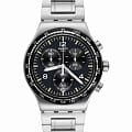 Часы Swatch YVS444GC — это стильный и современный аксессуар для тех, кто ценит лёгкость и комфорт. Этот стильный хронографХронографФункция позволяет измерять отрезки времени с особой точностью: часы, минуты, секунды. Верным признаком хронографа является наличие на циферблате 3 дополнительных окошек-счётчиков. революция стиля, ведь в ней изящно сочетаются спортивный дух и подчеркнутая элегантность. Эти часы оснащены черным циферблатом с радиальной полировкой и белым принтом, а также окошком даты в положении 6 часов и стрелками с люминесцентным покрытиемЛюминесцентное покрытиеПозволяет считывать показания времени в темноте. Производители наносят на стрелки, часовые индексы, безель или поверхность циферблата светонакопительный состав, дающий холодное свечение.. БезельБезельВнешний ободок, закрепляющий стекло. В спортивных часах так называется поворотное кольцо с делениями на циферблате, выполняет роль таймера – замеряет отрезки времени на шкале. Неподвижный безель – элемент декора. Однонаправленно вращающийся безель на дайверских часах позволяет фиксировать моменты погружения и выныривания на поверхность. из полированной стали с черным PVDPVDУльтратонкое покрытие наносится в технике вакуумного напыления, сочетает в себе нитрид титана особой прочности со слоем золота или оксида хрома. Несёт в себе декоративную или защитную функцию. покрытием имеет гравировку, выполненную белой эмалью, и помещен в корпус из полированной нержавеющей стали. Регулируемый браслет с раскладной застёжкойРаскладная застёжкаТакой тип застёжки используется только на браслетах из металла. Она никогда не раскрывается полностью, происходит разделение на 2 и более частей. Раскладывающая застёжка снизит вероятность потери часов к минимуму., напоминающий длинную черную гоночную трассу, изготовлен из нержавеющей стали. Водозащита 30 метров делает часы практичными для повседневного использования. Эти часы подойдут для повседневного ношения и станут ярким акцентом в вашем наряде.