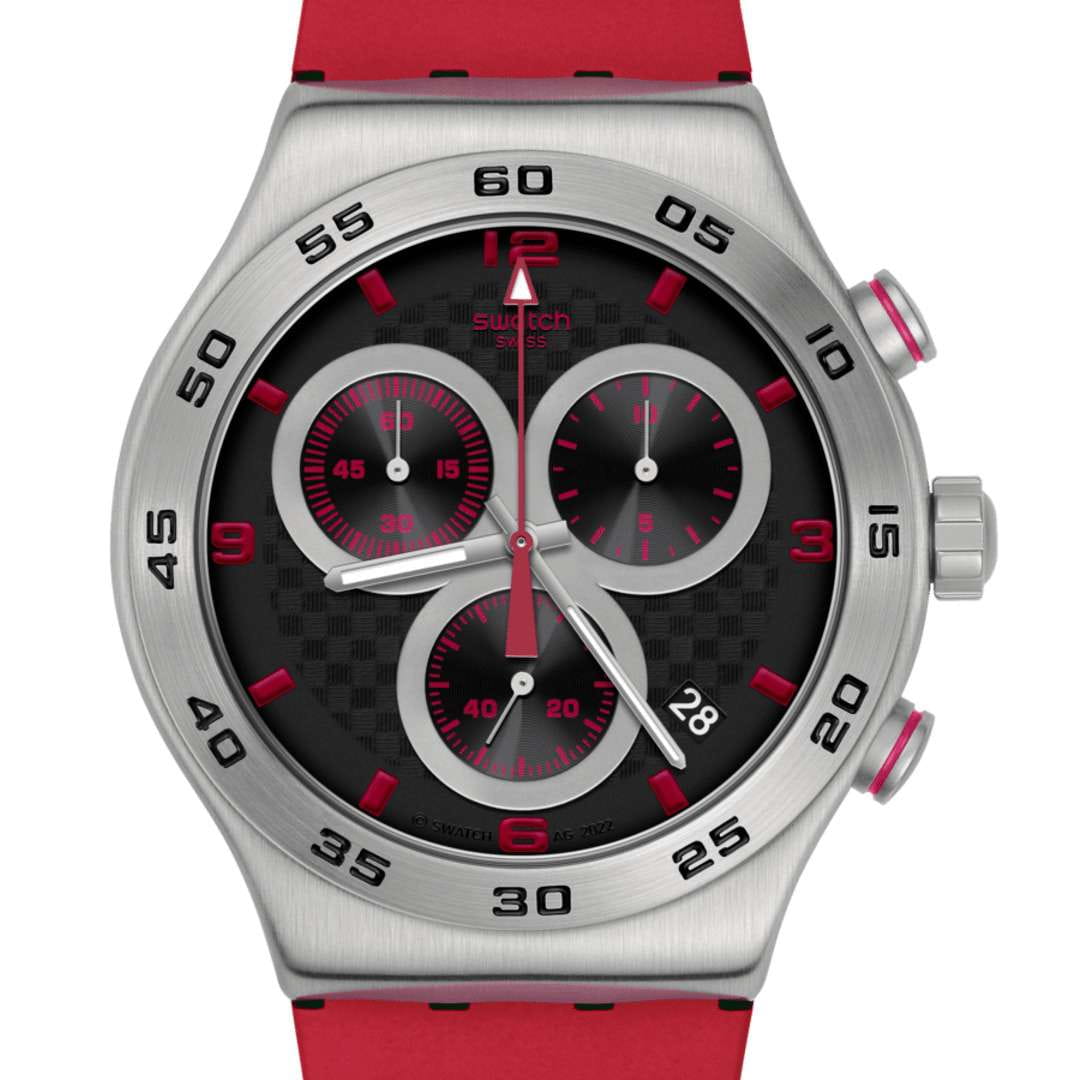 Часы Swatch YVS524 — это стильный и современный аксессуар для тех, кто ценит лёгкость и комфорт. Эти часы с хронографомХронографФункция позволяет измерять отрезки времени с особой точностью: часы, минуты, секунды. Верным признаком хронографа является наличие на циферблате 3 дополнительных окошек-счётчиков. из нержавеющей стали воплощают в себе утонченный стиль городского шика. Черный циферблат сочетает в себе уникальный эффект углеродного волокна и красный принт. Матированный корпус из нержавеющей стали и пряжка в сочетании с матово-красным каучуковым ремешком и тренчиком производят неизгладимое впечатление. На часовую, минутную и секундную стрелки нанесено люминесцентное покрытиеЛюминесцентное покрытиеПозволяет считывать показания времени в темноте. Производители наносят на стрелки, часовые индексы, безель или поверхность циферблата светонакопительный состав, дающий холодное свечение., которое светится в темноте, создавая необычное изображение. Водозащита 30 метров делает часы практичными для повседневного использования. Эти часы подойдут для повседневного ношения и станут ярким акцентом в вашем наряде.