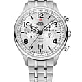 Часы-хронографХронографФункция позволяет измерять отрезки времени с особой точностью: часы, минуты, секунды. Верным признаком хронографа является наличие на циферблате 3 дополнительных окошек-счётчиков. с секундомеромСекундомерСекундоме́р — прибор, способный измерять интервалы времени с точностью до долей секунды.. Кварцевый механизм с высокой точностью. минеральное стеклоМинеральное стеклоМинеральное стекло представляет собой искусственно выращенный минерал кварца. Такое стекло отличается особой устойчивостью к повреждениям и царапинам. Уступает по некоторым качествам сапфировому стеклу. устойчивое к появлению царапин, обладающее высокой прозрачностью. Стрелки и метки с люминесцентным покрытиемЛюминесцентное покрытиеПозволяет считывать показания времени в темноте. Производители наносят на стрелки, часовые индексы, безель или поверхность циферблата светонакопительный состав, дающий холодное свечение.. Класс водозащиты: 100 метров, позволит плавать, нырять и заниматься другими водными видами спорта. Корпус часов изготовлен из нержавеющей стали. Браслет с раскладной застёжкойРаскладная застёжкаТакой тип застёжки используется только на браслетах из металла. Она никогда не раскрывается полностью, происходит разделение на 2 и более частей. Раскладывающая застёжка снизит вероятность потери часов к минимуму..