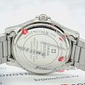 Кварцевый механизм с высокой точностью. Минеральное стеклоМинеральное стеклоМинеральное стекло представляет собой искусственно выращенный минерал кварца. Такое стекло отличается особой устойчивостью к повреждениям и царапинам. Уступает по некоторым качествам сапфировому стеклу. устойчивое к появлению царапин, обладающее высокой прозрачностью. Стрелки и метки с люминесцентным покрытиемЛюминесцентное покрытиеПозволяет считывать показания времени в темноте. Производители наносят на стрелки, часовые индексы, безель или поверхность циферблата светонакопительный состав, дающий холодное свечение.. Класс водозащиты: 50 метров, позволит защитить корпус от случайных брызг или капель дождя. Корпус часов изготовлен из нержавеющей стали. Браслет с раскладной застёжкойРаскладная застёжкаТакой тип застёжки используется только на браслетах из металла. Она никогда не раскрывается полностью, происходит разделение на 2 и более частей. Раскладывающая застёжка снизит вероятность потери часов к минимуму..