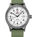 Модель SM34108.04 от Swiss Military by Chrono — это надёжные швейцарские часы в классическом армейском стиле, сочетающие функциональность и сдержанный дизайн. Корпус выполнен из нержавеющей стали с PVD-покрытиемPVDУльтратонкое покрытие наносится в технике вакуумного напыления, сочетает в себе нитрид титана особой прочности со слоем золота или оксида хрома. Несёт в себе декоративную или защитную функцию., подчёркивая прочность и элегантность конструкции. Циферблат с арабскими цифрами обеспечивает отличную читаемость, а функция отображения даты добавляет практичности. Часы оснащены кварцевым механизмом, обеспечивающим точный ход. Циферблат защищён сапфировым стекломСапфировое стеклоПрочный и надёжный материал из кристалла сапфира синтетического происхождения, характеризующийся особой твёрдостью и устойчивостью к царапинам и повреждениям., устойчивым к царапинам. Тканевый ремешок на стандартной застежке для надёжной фиксации на запястье. Модель обладает водонепроницаемостью до 100 метров, что делает её подходящей для плавания и сноркелинга.