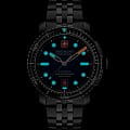 Swiss Military Hanowa Maitre Plongeur Automatic SMWGL0002002 — профессиональные часы для дайвинга с швейцарской точностью и надёжной конструкцией. Корпус диаметром 44 мм выполнен из нержавеющей стали, что обеспечивает прочность и долговечность. Однонаправленный вращающийся безельБезельВнешний ободок, закрепляющий стекло. В спортивных часах так называется поворотное кольцо с делениями на циферблате, выполняет роль таймера – замеряет отрезки времени на шкале. Неподвижный безель – элемент декора. Однонаправленно вращающийся безель на дайверских часах позволяет фиксировать моменты погружения и выныривания на поверхность. с керамической вставкой позволяет точно отслеживать время погружения. Синий циферблат украшен накладными часовыми индексами и стрелками с люминесцентным покрытиемЛюминесцентное покрытиеПозволяет считывать показания времени в темноте. Производители наносят на стрелки, часовые индексы, безель или поверхность циферблата светонакопительный состав, дающий холодное свечение., что гарантирует превосходную читаемость даже в темноте. Окошко даты расположено на отметке «6 часов». Защиту циферблата обеспечивает сапфировое стеклоСапфировое стеклоПрочный и надёжный материал из кристалла сапфира синтетического происхождения, характеризующийся особой твёрдостью и устойчивостью к царапинам и повреждениям., устойчивое к царапинам. Внутри установлен швейцарский автоматический механизм Soprod P024 с запасом хода до 38 часов, обеспечивающий надёжность и точность хода. Часы укомплектованы браслетом из нержавеющей стали, а раскладная застёжкаРаскладная застёжкаТакой тип застёжки используется только на браслетах из металла. Она никогда не раскрывается полностью, происходит разделение на 2 и более частей. Раскладывающая застёжка снизит вероятность потери часов к минимуму. гарантирует комфортную и надёжную фиксацию на запястье. В комплекте также предусмотрен сменный силиконовый ремешок. Водонепроницаемость 1000 метров делает модель идеальным выбором для глубоководного дайвинга. Автоматический гелиевый клапан обеспечивает безопасное выравнивание давления при всплытии.