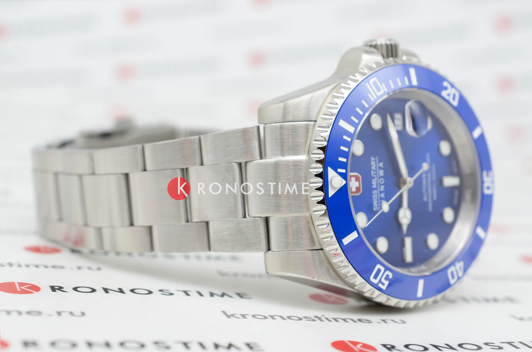 Мужские швейцарские часы Swiss Military Sealord SMWGL0006304 – это элегантные часы, сочетающие в себе классический дизайн и современную функциональность. Корпус из нержавеющей стали диаметром 41 мм сбалансирован и элегантен. Сапфировое стеклоСапфировое стеклоПрочный и надёжный материал из кристалла сапфира синтетического происхождения, характеризующийся особой твёрдостью и устойчивостью к царапинам и повреждениям. с антибликовым покрытием защищает циферблат от царапин и обеспечивает отличную читаемость при любом освещении. Браслет из нержавеющей стали с раскладной застёжкойРаскладная застёжкаТакой тип застёжки используется только на браслетах из металла. Она никогда не раскрывается полностью, происходит разделение на 2 и более частей. Раскладывающая застёжка снизит вероятность потери часов к минимуму. идеально дополняют дизайн часов, обеспечивая комфортное ношение. Люминесцентное покрытиеЛюминесцентное покрытиеПозволяет считывать показания времени в темноте. Производители наносят на стрелки, часовые индексы, безель или поверхность циферблата светонакопительный состав, дающий холодное свечение. стрелок и меток позволит вам следить за временем даже в полной темноте. Вращающийся керамический безельБезельВнешний ободок, закрепляющий стекло. В спортивных часах так называется поворотное кольцо с делениями на циферблате, выполняет роль таймера – замеряет отрезки времени на шкале. Неподвижный безель – элемент декора. Однонаправленно вращающийся безель на дайверских часах позволяет фиксировать моменты погружения и выныривания на поверхность.. Индикатор даты в положении «3 часа». Водонепроницаемость до 200 метров идеально подходят для дайвинга. Автоматический швейцарский механизм Soprod P024, который основан на знаменитом механизме ETA 2824. Эти профессиональные часы для дайвинга швейцарского производства созданы для преодоления трудностей — будь то под водой или в городских джунглях. Будь то деловая встреча, прогулка или спортивные соревнования — Swiss Military Hanowa Sealord Automatic станут идеальным спутником для мужчин