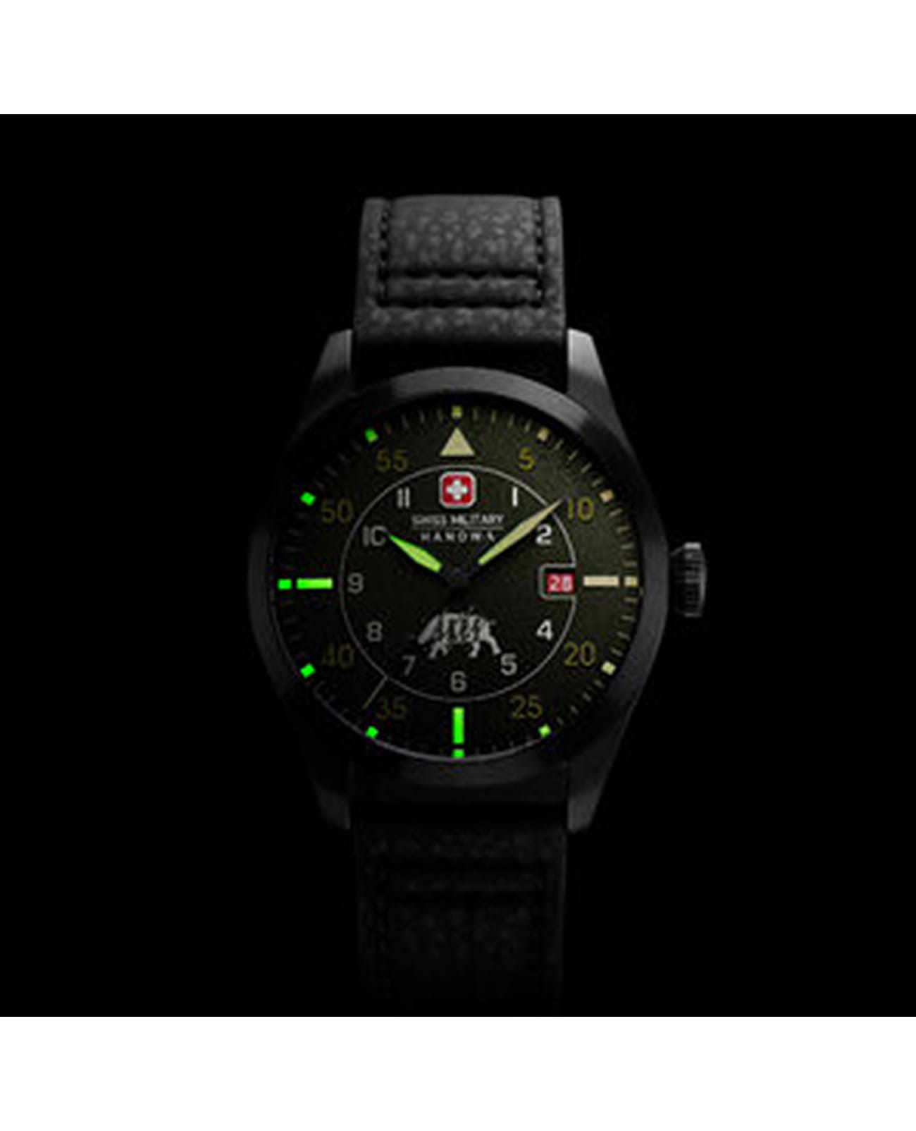Мужские швейцарские часы Swiss Military Hanowa Lead Ranger SMWGN0001201, кварцевый механизм с высокой точностью. Сапфировое стеклоСапфировое стеклоПрочный и надёжный материал из кристалла сапфира синтетического происхождения, характеризующийся особой твёрдостью и устойчивостью к царапинам и повреждениям. устойчивое к появлению царапин, обладающее высокой прозрачностью. Корпус часов изготовлен из нержавеющей стали. Стрелки с люминесцентным покрытиемЛюминесцентное покрытиеПозволяет считывать показания времени в темноте. Производители наносят на стрелки, часовые индексы, безель или поверхность циферблата светонакопительный состав, дающий холодное свечение.. Окошко даты в положении 3 часов. Класс водозащиты: 100 метров, позволит плавать, нырять и заниматься другими водными видами спорта. Кожаный ремешок на стандартной застежке.