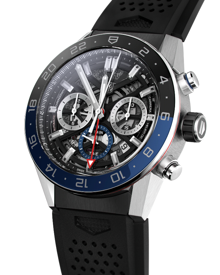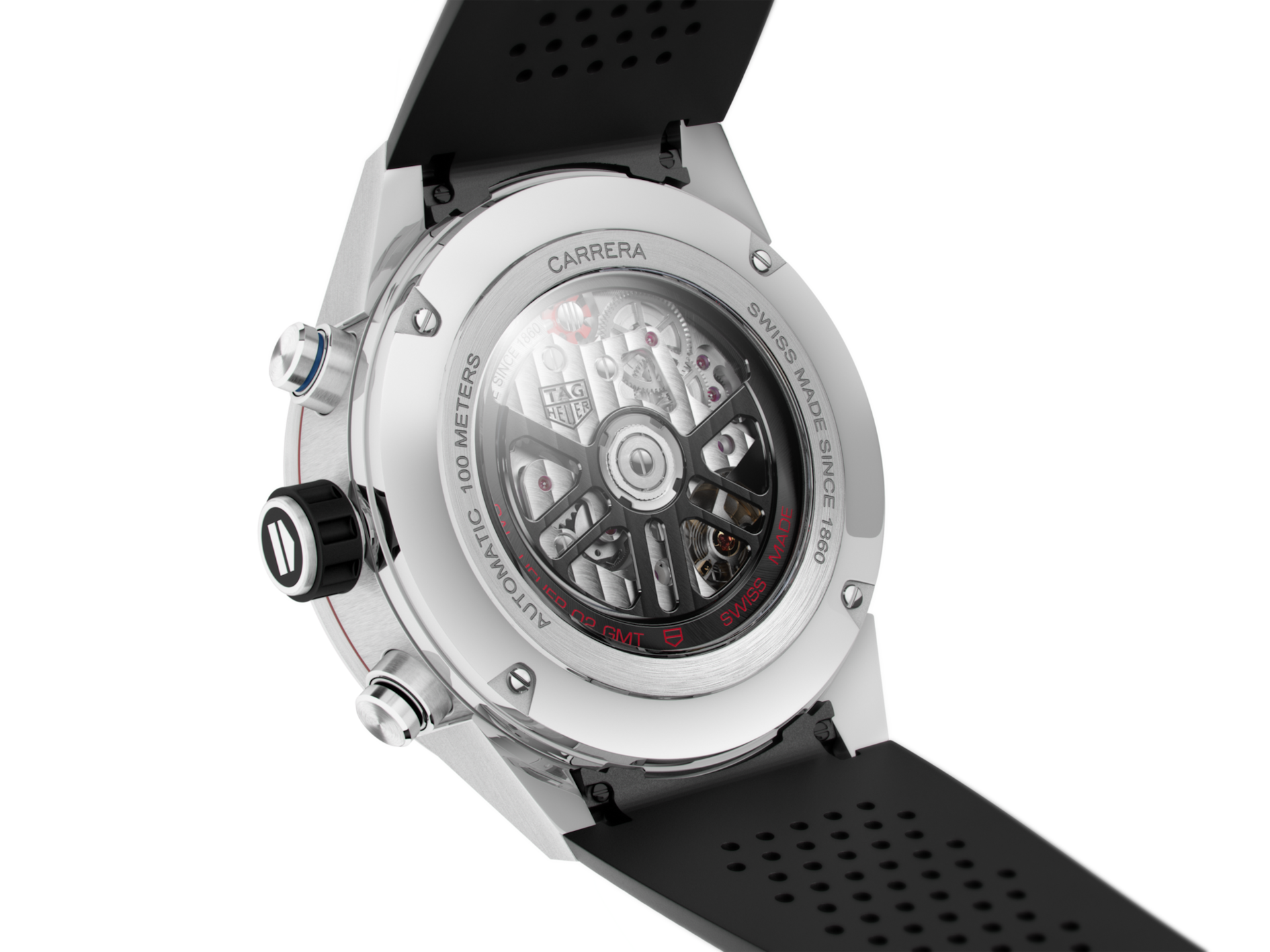 Часы TAG Heuer Carrera Chronograph GMT оснащены мануфактурным механизмом Calibre HEUER 02. Модель имеет черный циферблат, стальной корпус диаметром 45 мм и неподвижный безель из керамики синего и черного цветов. Ремешок из каучука с перфорацией воздает дань уважения наследию Carrera в мире автоспорта. Часовой механизм обладает впечатляющим 80-часовым запасом хода. TAG Heuer Carrera CBG2A1Z.FT6157, механический механизм (автоматический калибр) с высокой точностью. Сапфировое стекло устойчивое к появлению царапин, обладающее высокой прозрачностью. Класс водозащиты: 100 метров, позволит плавать, нырять и заниматься другими водными видами спорта. Корпус часов изготовлен из стали, цвета.