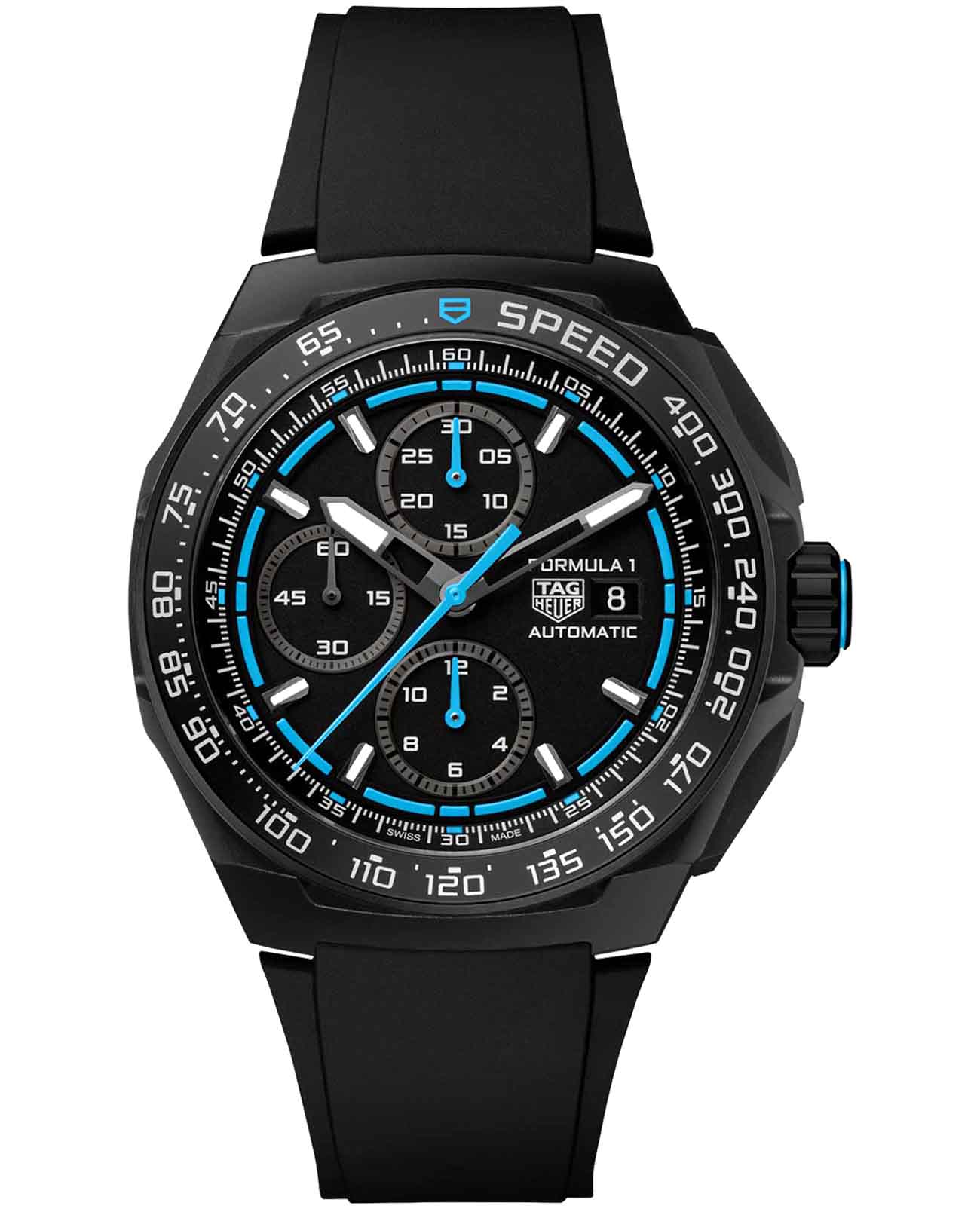 Мужские механические часы TAG Heuer Formula 1 Chronograph CBZ2084.FT8097 — это стильное сочетание элегантности и современного дизайна. Корпус из титана 2-го класса диаметром 44 мм c DLC-покрытиемDLC-покрытиеDiamond like carbon - одно из лучших видов покрытия, представляющее собой углерод с алмазными свойствами. На поверхность материала наносятся распавшиеся молекулы углерода, превращающиеся в плёнку из алмазоподобных связей, которая перенимает твёрдость алмаза. идеально сбалансирован и элегантен. Сапфировое стеклоСапфировое стеклоПрочный и надёжный материал из кристалла сапфира синтетического происхождения, характеризующийся особой твёрдостью и устойчивостью к царапинам и повреждениям. с антибликовым покрытием защищает циферблат от царапин и обеспечивает отличную читаемость при любом освещении. Резиновый ремешок на стандартной застежке идеально дополняют дизайн часов, обеспечивая комфортное ношение. Стрелки и метки на циферблате имеют люминесцентное покрытиеЛюминесцентное покрытиеПозволяет считывать показания времени в темноте. Производители наносят на стрелки, часовые индексы, безель или поверхность циферблата светонакопительный состав, дающий холодное свечение. позволяющее легко определять время даже в темноте. БезельБезельВнешний ободок, закрепляющий стекло. В спортивных часах так называется поворотное кольцо с делениями на циферблате, выполняет роль таймера – замеряет отрезки времени на шкале. Неподвижный безель – элемент декора. Однонаправленно вращающийся безель на дайверских часах позволяет фиксировать моменты погружения и выныривания на поверхность. тахиметраТахиметрРазмеченная шкала, располагается на ободке или безеле часов. Тахиметр позволяет рассчитать скорость на определённом участке пути, расстояние измеряется в километрах или милях. подчёркивает спортивное наследие часов. Часы обладают впечатляющей водонепроницаемостью до 20 бар (200 метров), что делает их идеальными для плавания, ныряния и погружений с аквалангом. Автоматический хронографХронографФункция позволяет измерять отрезки времени с особой точностью: часы, минуты, секунды. Верным признаком хронографа является наличие на циферблате 3 дополнительных окошек-счётчиков. обеспечивает точное измерение времени на каждом круге. Запас хода до 42 часов. Завинчивающаяся задняя крышка украшена специальным узором «клетка». Прочная конструкция часов и высокопроизводительный механизм делают их идеальным спутником для любителей гонок.