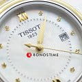 Уникальностью модели является характерный узор в виде мельчайших букв «Т», расположенных в шахматном порядке. По окружности циферблат имеет привлекательную вставку из перламутра, винтажный тон придают римские цифры. Он инкрустирован 10 роскошными бриллиантами в 0,02 карат. Двухцветная модель с золотистым PVD-покрытиемPVDУльтратонкое покрытие наносится в технике вакуумного напыления, сочетает в себе нитрид титана особой прочности со слоем золота или оксида хрома. Несёт в себе декоративную или защитную функцию. оснащена кварцевым механизмом ETA F03.111 с высокой точностью хода. Нержавеющая сталь 316L. Водостойкость 50 метров. Сапфировое стекло. . Окошко даты. Габариты: 29 x 29 x 8,2 мм.