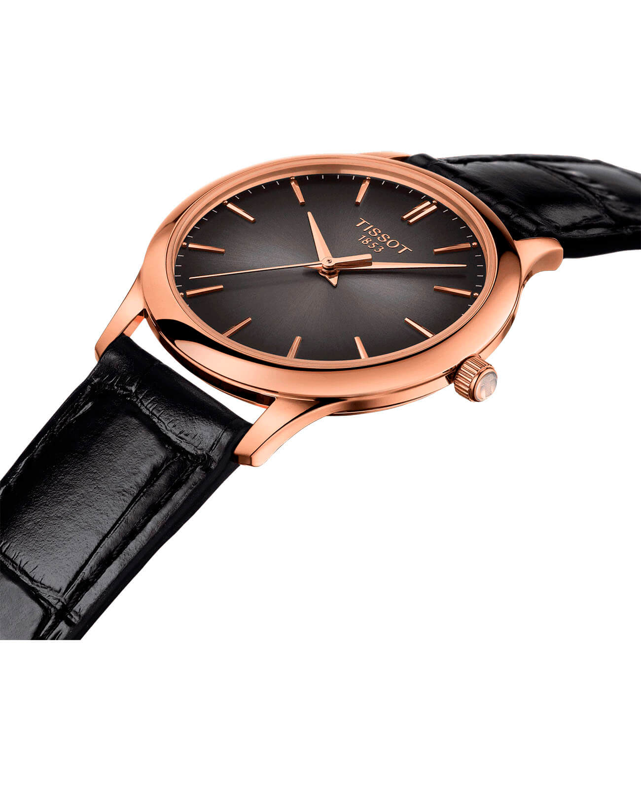 Модель в классическом исполнении точно должна быть в коллекции истинной леди. Дополнительное очарование придаёт сочетание минималистичного антрацитового циферблата и чёрного ремешка из натуральной кожи, поверхность которого сделана под кожу крокодила. Корпус сделан из 18-каратного розового золота18-каратное золотоОбозначение по каратной системе пробирования, оно показывает, сколько драгоценного металла содержится в изделии. 18 карат - в составе 75% чистого золота, соответствует 750 пробе.