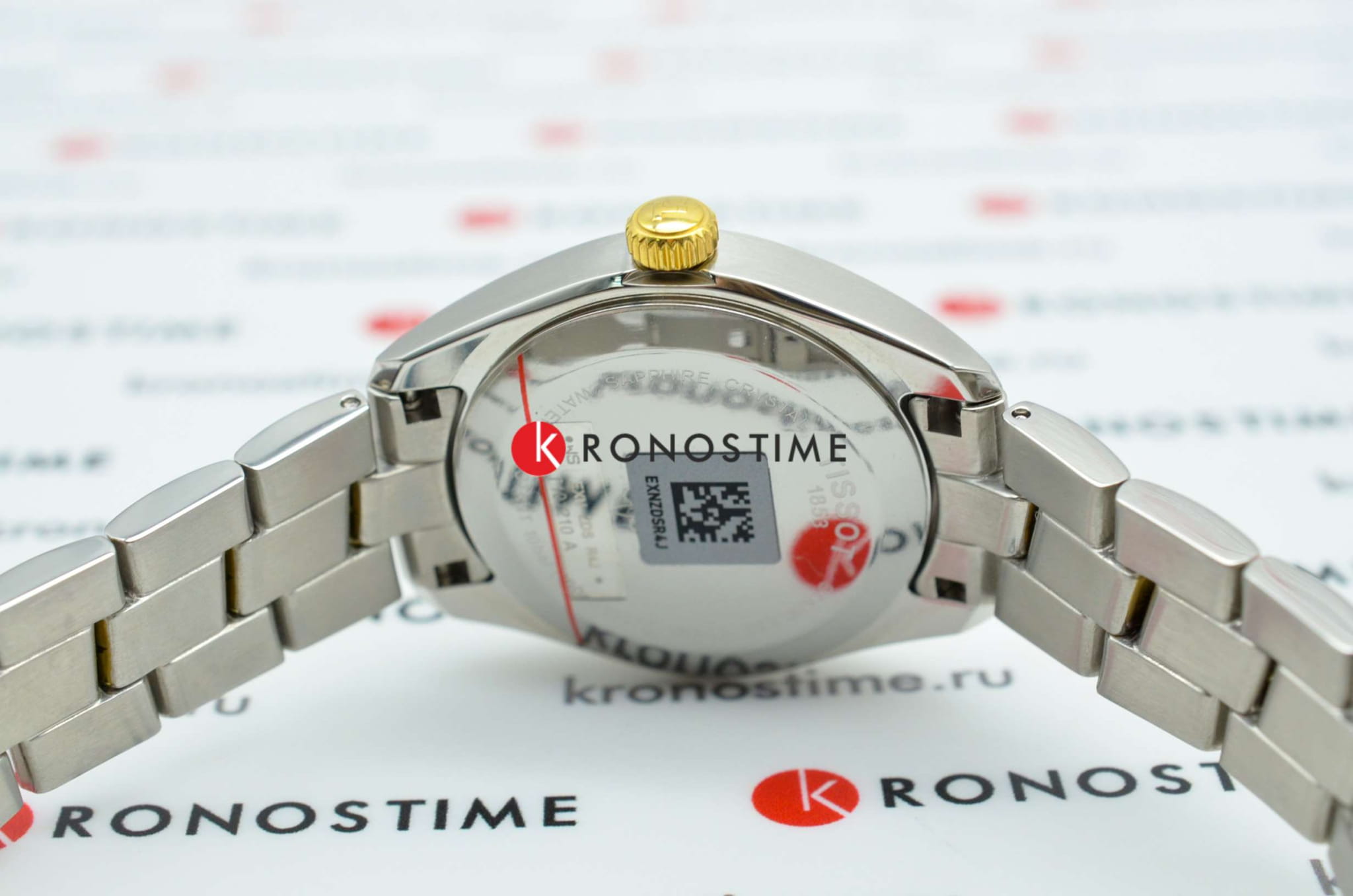 Корпус и часть звеньев браслета имеют PVD-покрытиеPVDУльтратонкое покрытие наносится в технике вакуумного напыления, сочетает в себе нитрид титана особой прочности со слоем золота или оксида хрома. Несёт в себе декоративную или защитную функцию. золотистого оттенка, такой цветовой акцент приносит модели особый стиль и утончённость. Стрелки имеют люминесцентное покрытие, позволяющее использовать часы в любое время суток. Кварцевый механизм ETA F04.111. Сапфировое стекло устойчиво к образованию царапин. . Функции: EOLEOLПредставляет собой систему, уведомляющую владельца часов о необходимости замены элемента питания. За 2 недели до полного разряда батарейки секундная стрелка перестаёт ходить чётко и начинает перепрыгивать на 3-4 деления., отображение даты. Габариты: 33 x 33 x 9 мм.