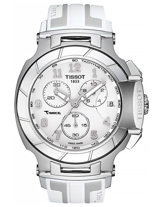 Мужские швейцарские часы-хронографХронографФункция позволяет измерять отрезки времени с особой точностью: часы, минуты, секунды. Верным признаком хронографа является наличие на циферблате 3 дополнительных окошек-счётчиков. Tissot T-Sport T-Race Quartz Chronograph T048.417.17.012.00, кварцевый механизм с высокой точностью. Сапфировое стеклоСапфировое стеклоПрочный и надёжный материал из кристалла сапфира синтетического происхождения, характеризующийся особой твёрдостью и устойчивостью к царапинам и повреждениям. устойчивое к появлению царапин, обладающее высокой прозрачностью. Класс водозащиты: 100 метров, позволит плавать, нырять и заниматься другими водными видами спорта. Корпус часов изготовлен из стали. Силиконовый ремешок с раскладной застёжкойРаскладная застёжкаТакой тип застёжки используется только на браслетах из металла. Она никогда не раскрывается полностью, происходит разделение на 2 и более частей. Раскладывающая застёжка снизит вероятность потери часов к минимуму..