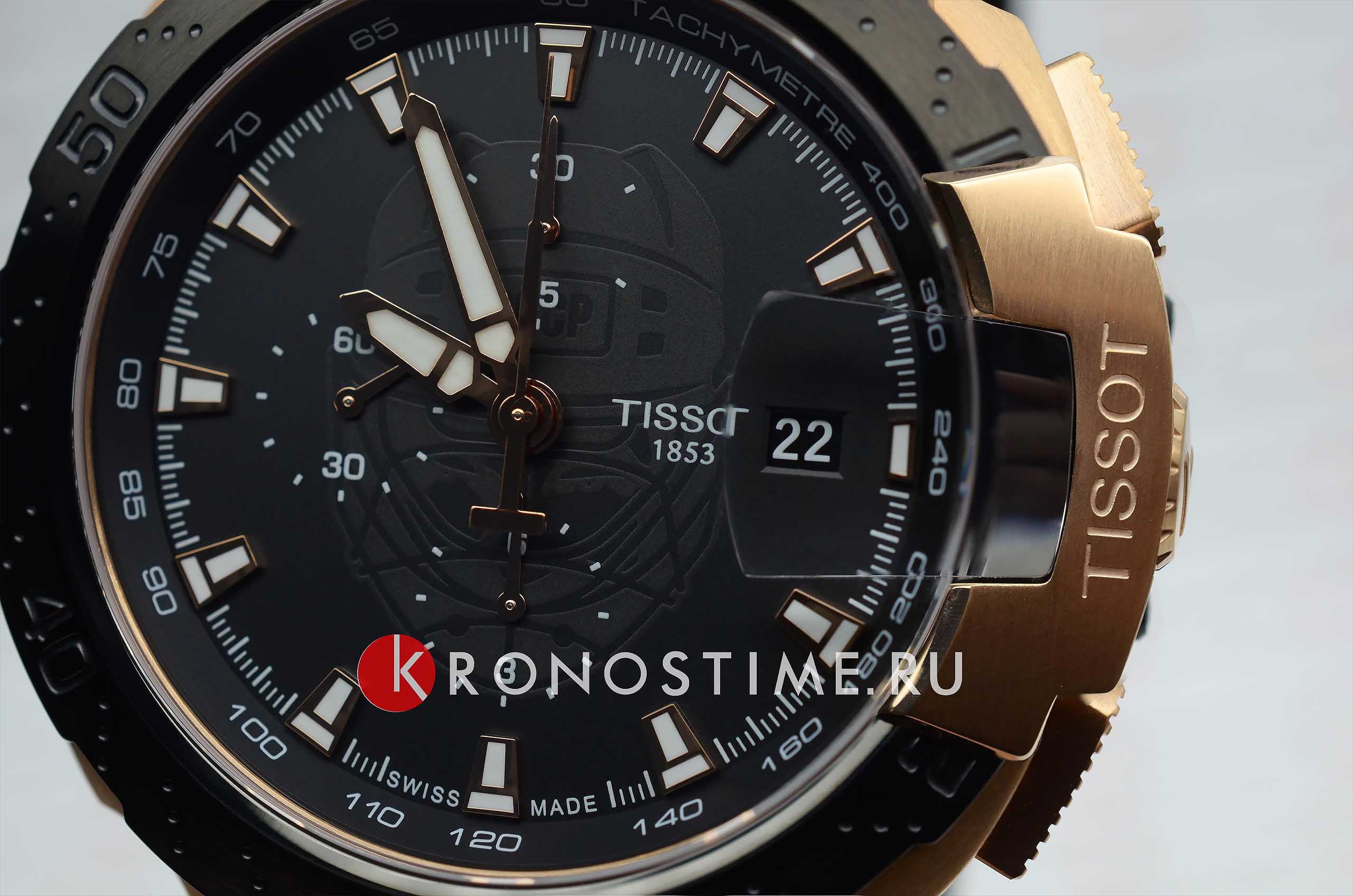 Мужские лимитированные швейцарские механические часы (20 экземпляров на Россию) из коллекции T-Race выпущены в честь легендарного хоккеиста Владислава Третьяка. (Владислав Третьяк — единственный хоккеист, которому удалось три раза получить награду лучшему хоккеисту Европы — «Золотую клюшку». Третьяк завоевал в общей сложности 90 медалей, в числе которых 3 золотые олимпийские, 10 золотых медалей чемпиона мира, 12 золотых — чемпиона Европы.) Часы с автоподзаводом, они оснащены популярным калибром ETA C01.211 с запасом хода 45 часов. Стальной корпус с чёрным и розово-золотистым PVDPVDУльтратонкое покрытие наносится в технике вакуумного напыления, сочетает в себе нитрид титана особой прочности со слоем золота или оксида хрома. Несёт в себе декоративную или защитную функцию.-покрытием. Сапфировое стеклоСапфировое стеклоПрочный и надёжный материал из кристалла сапфира синтетического происхождения, характеризующийся особой твёрдостью и устойчивостью к царапинам и повреждениям.. Удобный силиконовый браслет с раскладной застёжкойРаскладная застёжкаТакой тип застёжки используется только на браслетах из металла. Она никогда не раскрывается полностью, происходит разделение на 2 и более частей. Раскладывающая застёжка снизит вероятность потери часов к минимуму.. Люминесцентное покрытиеЛюминесцентное покрытиеПозволяет считывать показания времени в темноте. Производители наносят на стрелки, часовые индексы, безель или поверхность циферблата светонакопительный состав, дающий холодное свечение.. Водостойкость до 10 бар. СекундомерСекундомерСекундоме́р — прибор, способный измерять интервалы времени с точностью до долей секунды., тахиметрТахиметрРазмеченная шкала, располагается на ободке или безеле часов. Тахиметр позволяет рассчитать скорость на определённом участке пути, расстояние измеряется в километрах или милях., индикация числа. Габариты: 47,25 x 45 x 16 мм. Производство и сборка: Швейцария.