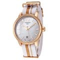 TISSOT T0954101703700 T-Sport Quickster Quartz - мужские кварцевые наручные часы Корпус этих часов среднего размера (40 мм) и выполнен из нержавеющей стали L316 металлического цвета Модель TISSOT T0954101703700 T-Sport Quickster Quartz имеет устойчивое к царапинам сапфировое стекло, тканевый ремешок серого цвета, белый циферблат Калибр механизма: ETA F06111 Класс водозащиты: 100 м / 10 АТМ (разрешается плавание и ныряние без акваланга) Дополнительные функции и особенности: отображение числа Полная заводская комплектация TISSOT: оригинальные часы, фирменная коробка, инструкция, сервисная книжка, роман о часовой фабрике, миникаталог, замшевый фирменный чехол черного цвета для хранения и/или переноски часов, кассовый и товарный чеки Международная гарантия 2 года Производство и сборка: Швейцария