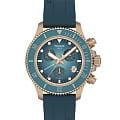 Мужские кварцевые часы Tissot Seastar 38 мм T1202173704100 — это современная интерпретация классического дайвинг-хронографа, сочетающая в себе мощь наследия и передовые технологии. Модель выполнена в круглой форме из нержавеющей стали 316L с PVD-покрытиемPVDУльтратонкое покрытие наносится в технике вакуумного напыления, сочетает в себе нитрид титана особой прочности со слоем золота или оксида хрома. Несёт в себе декоративную или защитную функцию. цвета каштанового золота, что придаёт ей благородный внешний вид и устойчивость к царапинам. Циферблат градиентного бирюзового цвета дополнен индексами, а его поверхность защищена сапфировым стекломСапфировое стеклоПрочный и надёжный материал из кристалла сапфира синтетического происхождения, характеризующийся особой твёрдостью и устойчивостью к царапинам и повреждениям. с двусторонним антибликовым покрытиемАнтибликовое покрытиеСлой оксида металла в 0,13-0,3 микрон, благодаря которому стекло часов не бликует и не отражает свет. Антибликовое покрытие уменьшает отражение света в 10 раз, обеспечивая отличную читаемость показателей циферблата., устойчивым к повреждениям. Стрелки и метки имеют люминесцентное покрытиеЛюминесцентное покрытиеПозволяет считывать показания времени в темноте. Производители наносят на стрелки, часовые индексы, безель или поверхность циферблата светонакопительный состав, дающий холодное свечение. Super-LumiNova®, обеспечивающее отличную читаемость даже в условиях слабого освещения. Браслет из силикона шириной 20 мм оснащён стандартной застёжкой, обеспечивающей комфорт и надёжную фиксацию на запястье. Ремешок является быстросменным, что позволяет легко менять его по желанию. Функциональность модели включает хронограф с центральной секундной стрелкой, 30-минутным и 1/10 секунды счётчиками, функции ADD и SPLIT, а также отображение времени, минут, малой секунды и даты. Водонепроницаемость позволяет использовать модель при плавании, нырянии и других водных активностях без глубокого погружения. Эти часы станут универсальным аксессуаром для тех, кто ценит сочетание стиля, функциональности и швейцарского мастерства — идеальный выбор для повседневной носки и активного образа жизни.
