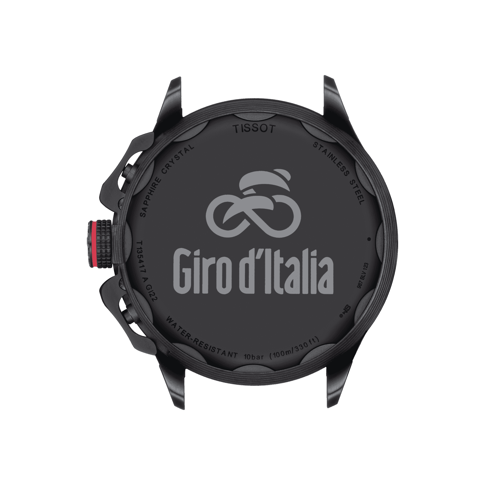 Модель часов из лимитированной коллекции, посвященной велогонке Giro D'Italia. Tissot T-Race Cycling Giro D'Italia T135.417.37.051.00, кварцевый механизм с высокой точностью. Сапфировое стекло устойчивое к появлению царапин, обладающее высокой прозрачностью. Класс водозащиты: 100 метров, позволит плавать, нырять и заниматься другими водными видами спорта. Корпус часов изготовлен из стали.