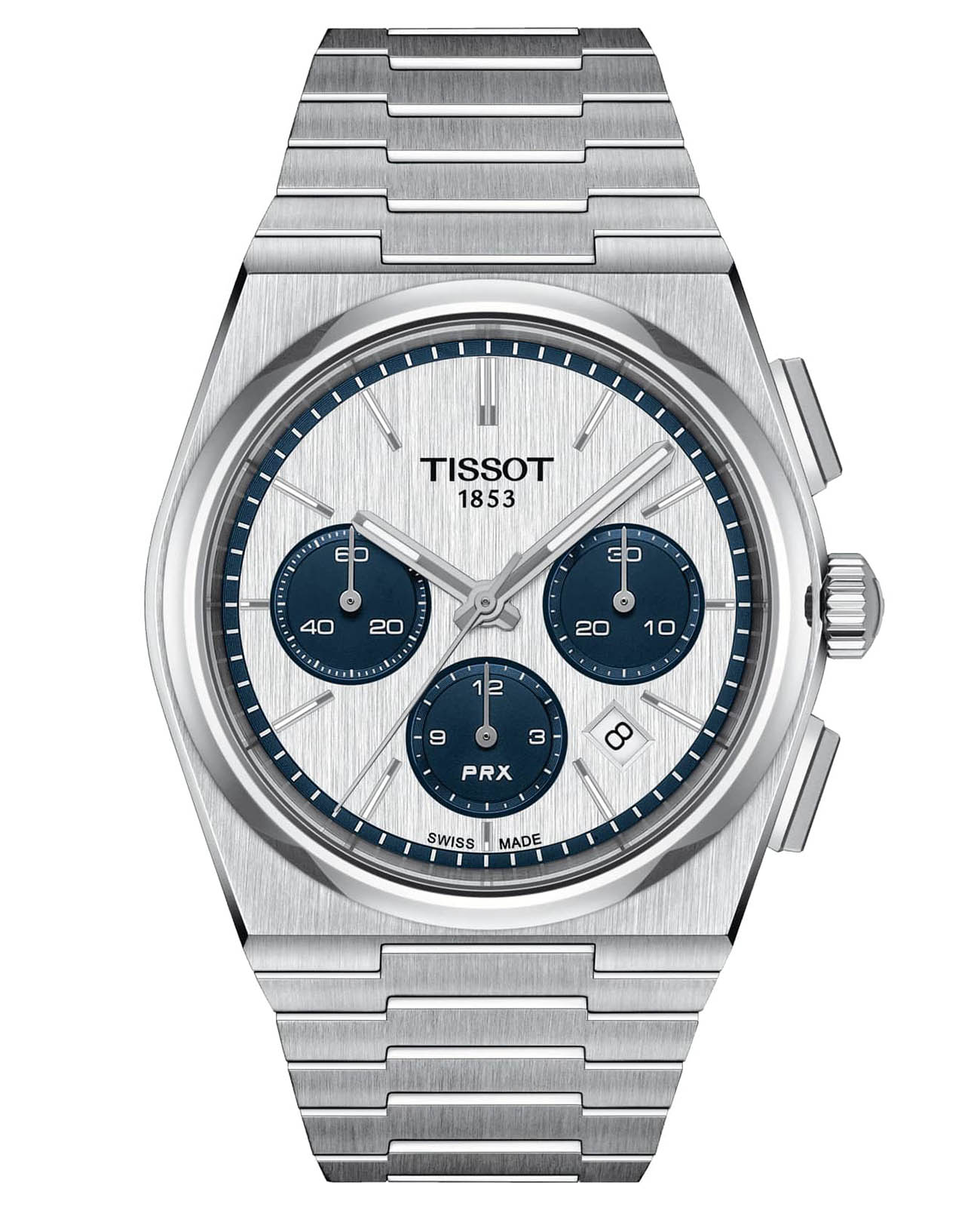 Часы PRX Chrono, созданные для ценителей дизайна и оснащенные функциями двадцать первого века в корпусе Tissot 1978 года выпуска, обязательно должны быть в списке пожеланий каждого любителя часов. Эти 42-миллиметровые часы из сатинированной стали повторяют изящную угловатую форму PRX, дополняя непринужденный стиль спортивных часов 1970-х годов так называемым циферблатом ‘обратная панда’. PRX Chrono оснащен калибром Valjoux A05.H31, который обеспечивает классическую компоновку циферблата хронографа 3, 6 и 9, а также увеличенный 60-часовой запас хода.