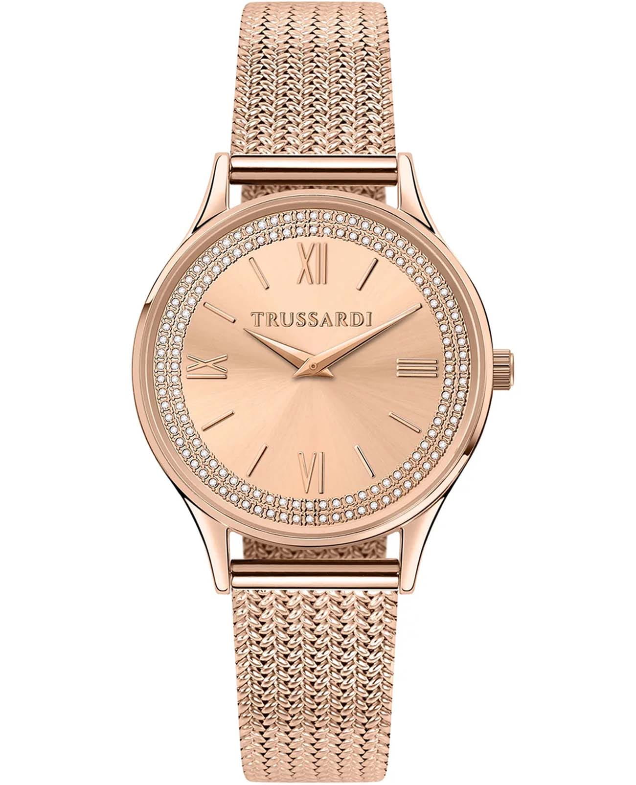 Итальянские женские часы Trussardi T-Star R2453152505 - это стильный женский аксессуар, который сочетает элегантный дизайн и практичность. Корпус выполнен из нержавеющей стали с IP-покрытиемIP-покрытиеМетод ионного напыления. Демонстрирует повышенную устойчивость к истиранию, окислению и химическим веществам. Под воздействием высокого давления и температуры около 1500°C молекулы металла надёжно соединяются с частицами корпуса часов., что обеспечивает долговечность и утончённый внешний вид. Надежное минеральное стеклоМинеральное стеклоМинеральное стекло представляет собой искусственно выращенный минерал кварца. Такое стекло отличается особой устойчивостью к повреждениям и царапинам. Уступает по некоторым качествам сапфировому стеклу. защищает циферблат от царапин и обеспечивает долговечность. Циферблат украшен кристаллами. Модель оснащена кварцевым механизмом, обеспечивающим высокую точность хода. Браслет из нержавеющей стали с IP-покрытиемIP-покрытиеМетод ионного напыления. Демонстрирует повышенную устойчивость к истиранию, окислению и химическим веществам. Под воздействием высокого давления и температуры около 1500°C молекулы металла надёжно соединяются с частицами корпуса часов. с раскладным замкомРаскладной замокДанный вариант застежки используется только на часах с металлическим браслетом. Отличительная особенность такого крепления в том, что длина браслета становится универсальной и вы можете самостоятельно отрегулировать нужный вам размер – застежка просто двигается по браслету часов. обеспечивает комфортное ношение. Водозащита 50 метров позволит защитить корпус от случайных брызг или капель дождя. Эта модель – отличный выбор для тех, кто ищет сочетание стиля, качества и функциональности. Часы станут не только полезным аксессуаром, но и выразительным элементом вашего имиджа.